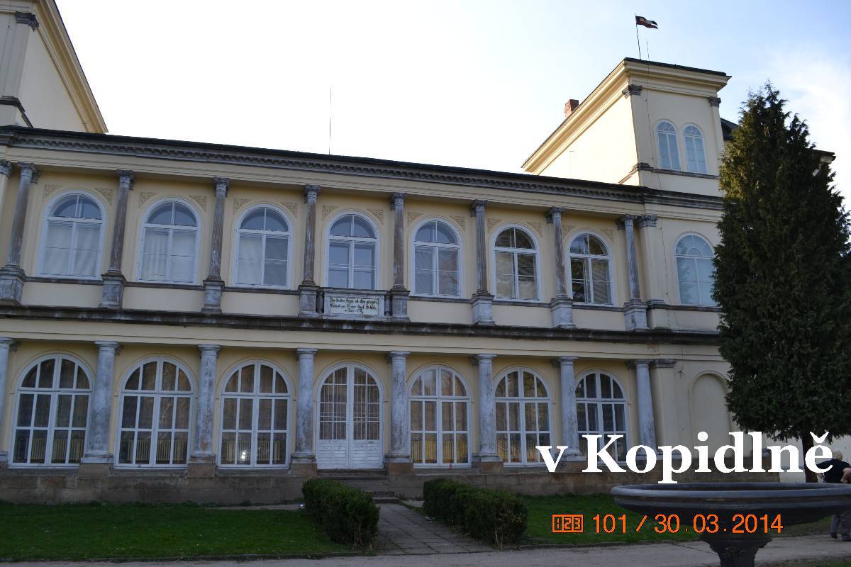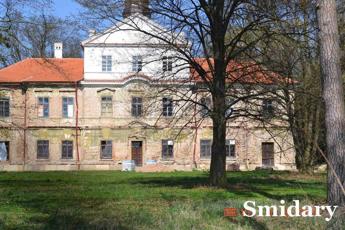 Zvonička je funkční a prý každou neděl se na ni zvoní. Děkujeme a jedem do Smidar, což je naše další zastávka našeho výletu. A taky zase jeden zámek. No strašné. Je opět v soukromých rukách, ale je tu vidět malá snaha o opravu. Chce se brečet. Prý soukromníci se postarají. Blbost, zničí, co se nepovedlo předtím státu. A tak pokračujeme dál do Kopidlna.