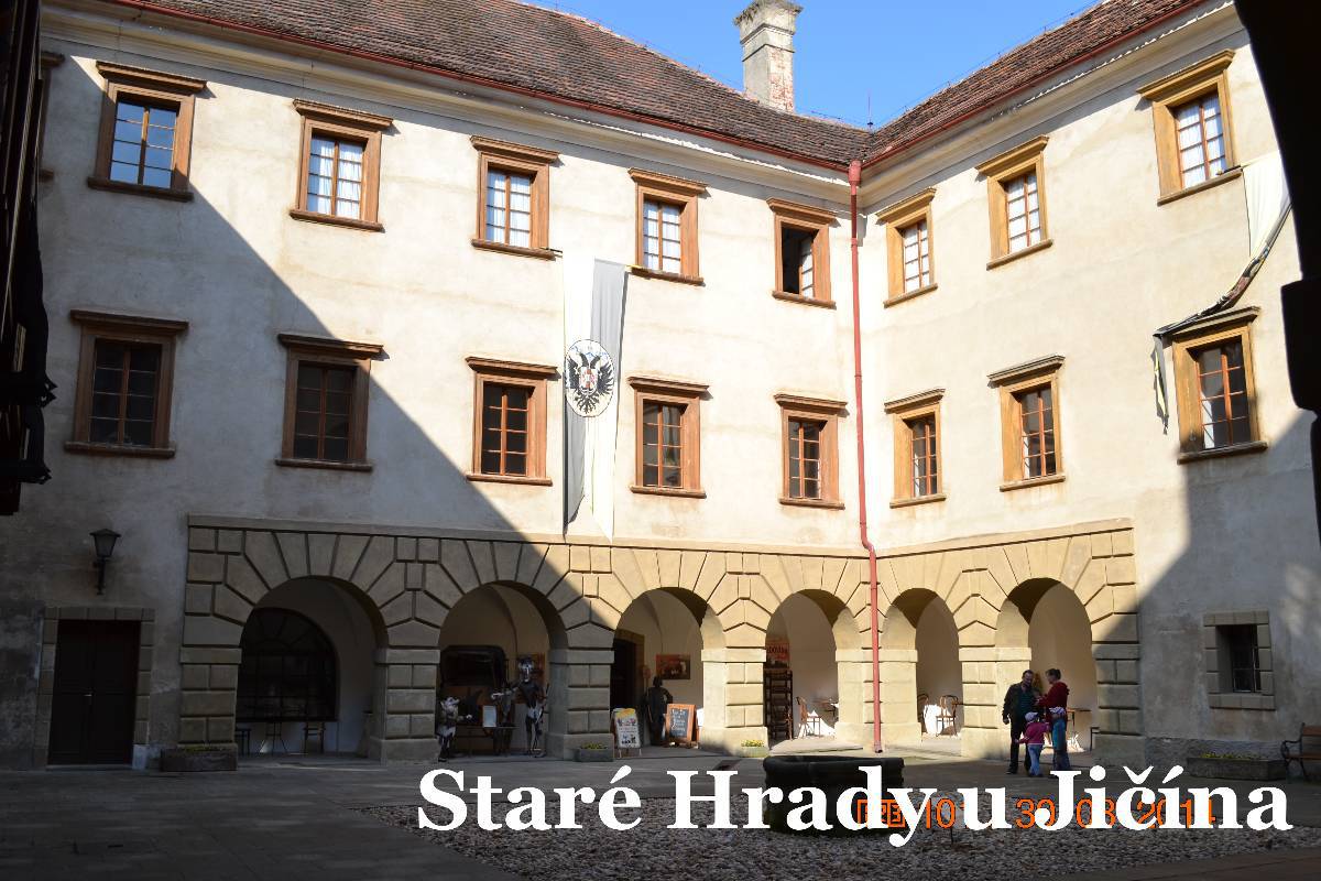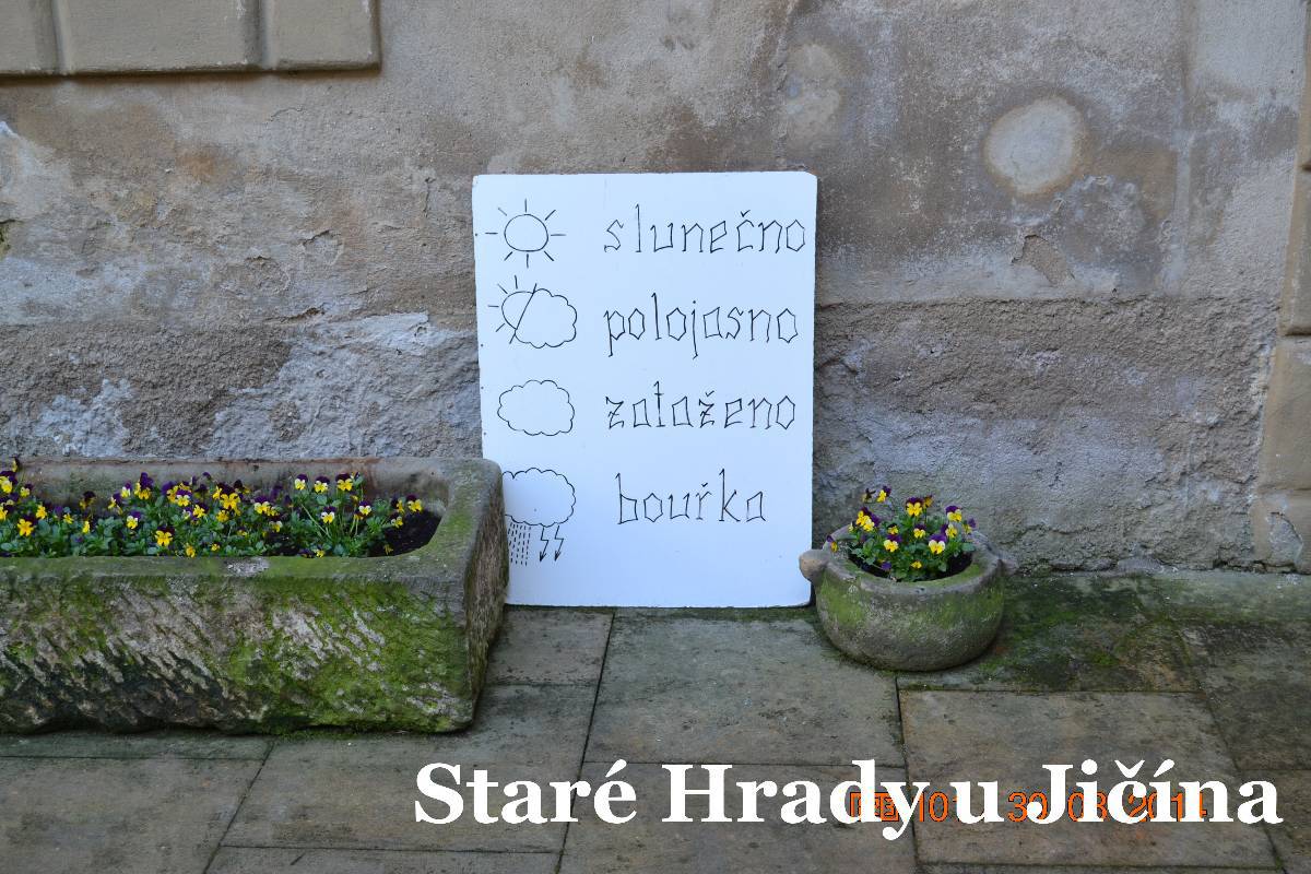 Říkáme si, že si dáme někde kafčo. Nakonec v radniční hospůdce si dáváme oběd a pivko. Jedno alkoholické, druhé nealkoholické. U stolu padá rozhodnutí o malé změně. Nejprve zajedeme do Starých Hradů. Řekl jsem kamarádce, že kdysi dávno jsem tam byl, ale hrad byl nepřístupný. Jelikož vím, že dnes je už přístupný, tak jsme necháváme kopidlnský zámek na později a vyrážíme směr Staré Hrady. Autíčko parkujeme před hradem, i když mnoho místa už u není. Parkuje se na paloučku naproti hradu a je tu i výběrčí.