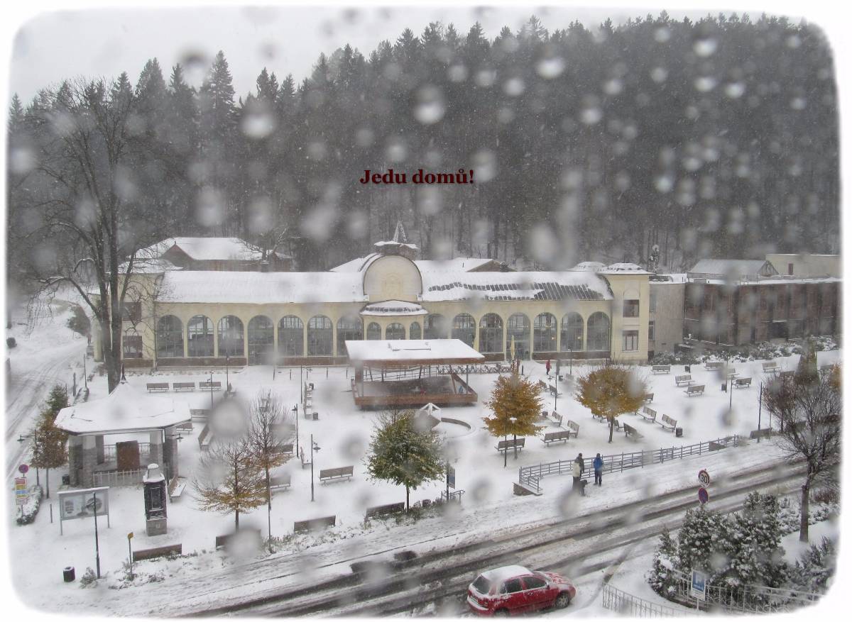 Tak plynuly dny jeden za druhým a já už jsem neříkala, že ty povinné tři týdny tam nějak přežiju. Chodívala jsem v době procedur dlouhými chodbami a skoro s každým jsem si tleskla a řekla něco hezkého. V páře nebo při kávě v Benátské hale jsem dělala vrbu klukům, tátům od rodin. Pomáhala jsem jim řešit jejich problémy, se kterými za mnou chodili jako za mámou. V krámečku pana Vorla, kde prodává svoje výrobky z kamenů, se na mě díval přívěsek z hematitu zvláštního kovového lesku tak dlouho tak intenzívně, že jsem si ho musela koupit. Od té doby k sobě patříme a stále ho nosím. Ve vířivce jsme s Vaškem, který několik měsíců nevěděl, že má ruce, hleděli skrz střešní okno k nebesům, skákali, radovali se jako malé děti a, ač nevěrci, volali vzhůru Bože, děkujeme! Mezi tím se nádherný teplý podzim začal měnit na ten sychravě nepříjemný. Moji kamarádi odjížděli domů a mně bylo smutno. A když si mě manžel vezl posledního října zpátky domů, ten rok POPRVÉ sněžilo ...