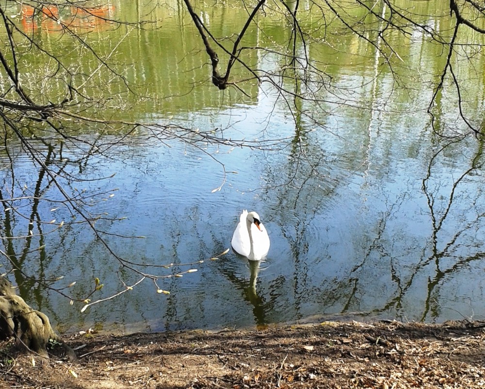 Na malém ostrůvku uprostřed rybníka už hrdě seděla labuť na vejcích, aby se svými potomky celé léto oživovala park. Její partner svědomitě hlídal, aby měla klid a hned výhružně připlul ke břehu, kde pobíhala malá Čikina. Ta ale o něj neměla zájem, hledala si tu klacíky, které pak vítězoslavně nesla v tlamičce.