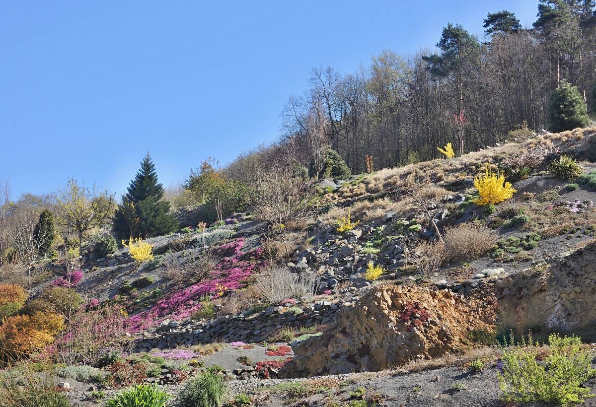Starý lom, který byl zavezen slévárenskými písky a zčásti i jiným odpadem, přeměnil pan Ing. Slabý na zónu klidu a pohody. Vybudoval terasy, na kterých je vysazeno 3200 kusů skalniček a trvalek v čedičové drti.