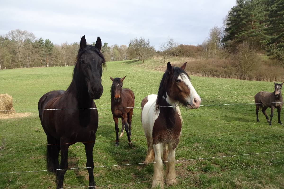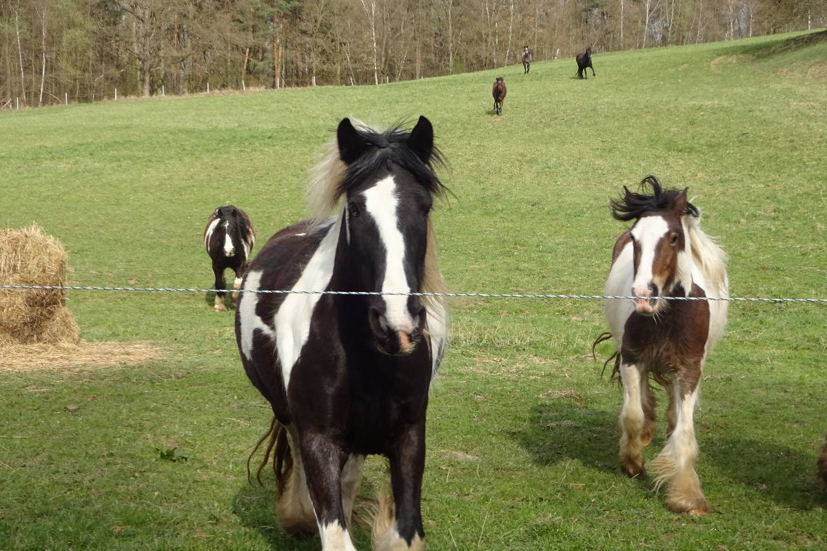 Moc jsme nespěchali, takže když jsem při projíždění českými hvozdy viděla nahoře na stráni pasoucí se koníky, manžel zastavil. Koně zbystřili a jak mě spatřili, vydali se mi v ústrety. Co vydali! Dali se do klusu, běželi směrem ke mně a zastavili se až u ohradníku. Zvědavě jsme se navzájem prohlíželi a k údivu řidiče jsem sebrala odvahu, zašeptala tomu jednomu: ty se mě trochu bojíš, viď, ale já se taky trochu bojím ... a pohladila jsem ho. Pěkný začátek víkendu. Pak jsme trochu zabloudili, ale už v deset hodin jsme stáli před Kamýkem.