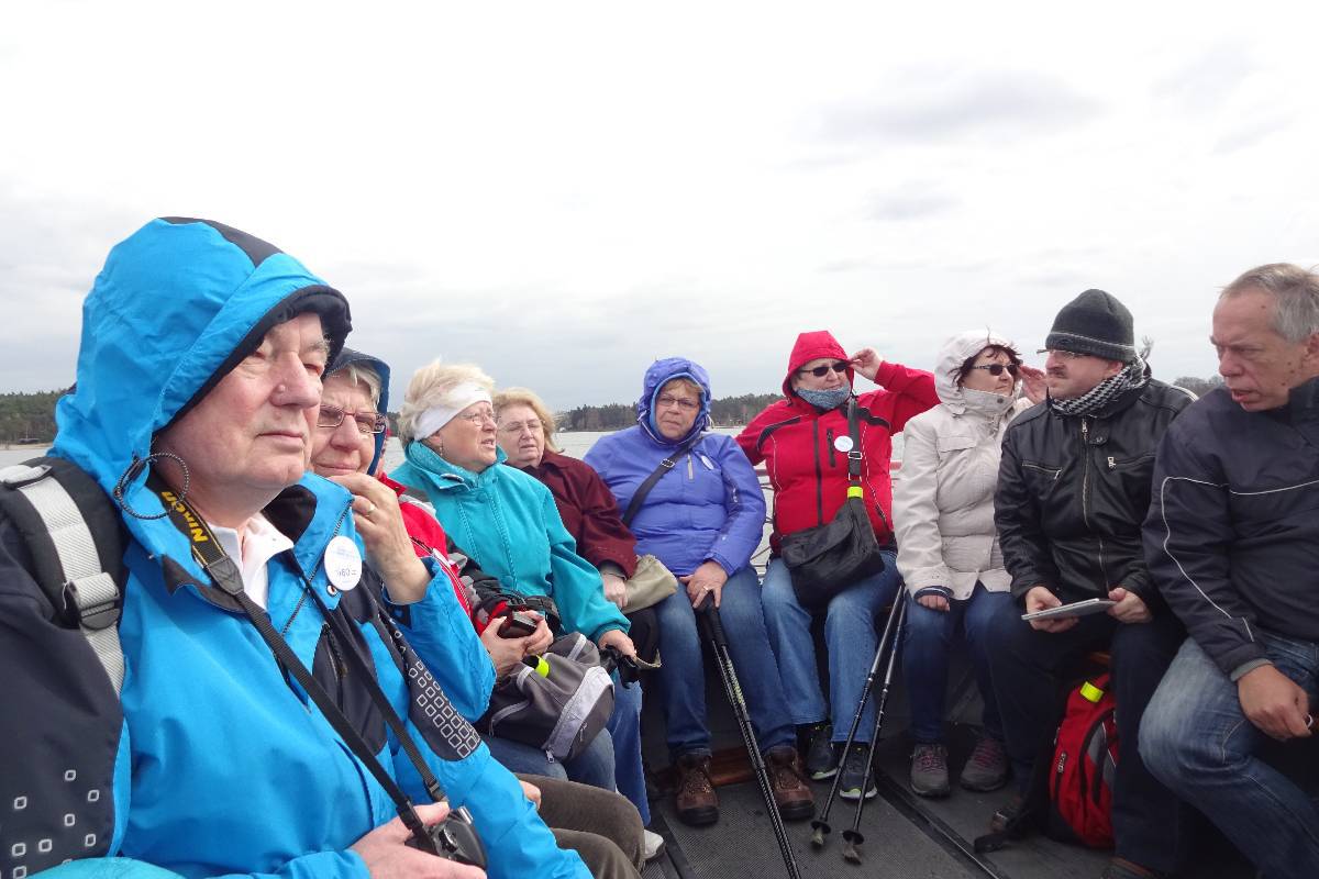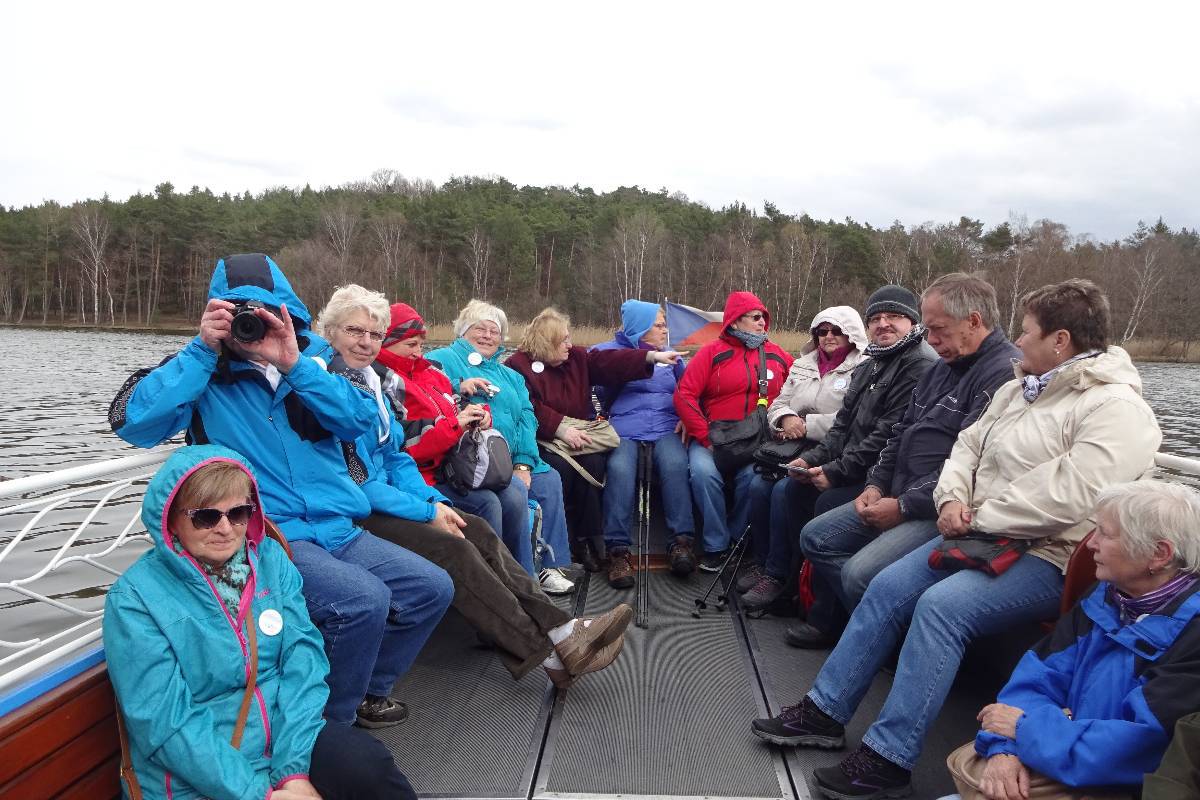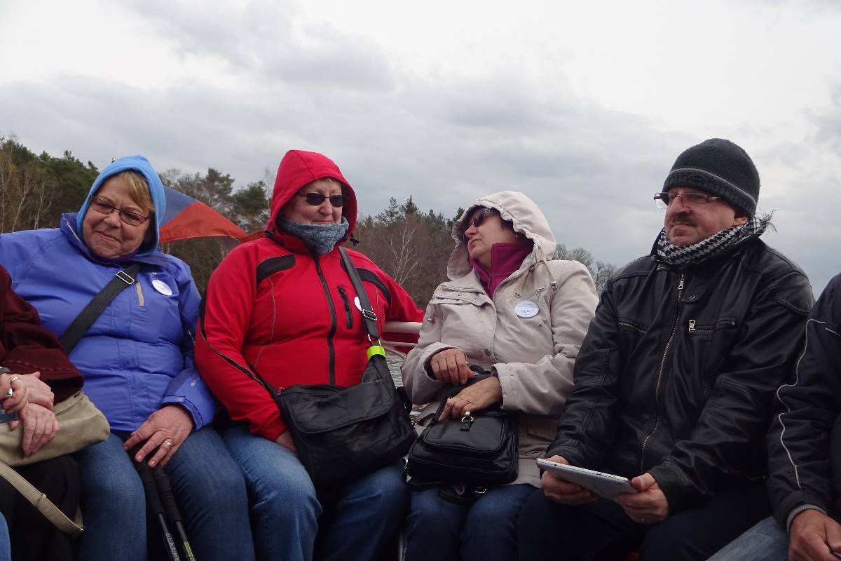 A víkend dostal rázný spád. Odpoledne jsme se vydali ke stanovišti lodí a tam nedůvěřivě obhlíželi takového trochu nedomrlého Hynka, který zajisté 40 osob nepojme. Stejně nedůvěřivě na tu sílu v dubnu v 8 stupních po plavbě toužícího rozjařeného houfu pohlížel i Hynek. Ale nakonec nás po domluvě vstřebal a povozil. Nutno přiznat, že osazenstvo vypadalo spíš jako výprava k severnímu pólu, jen Bertík neúnavně nosil míček nebo řídil loď. Promrzlou kumpanii Hynek vypustil a ta se odebrala do Kamýku vpustit do útrob něco pro zahřátí.