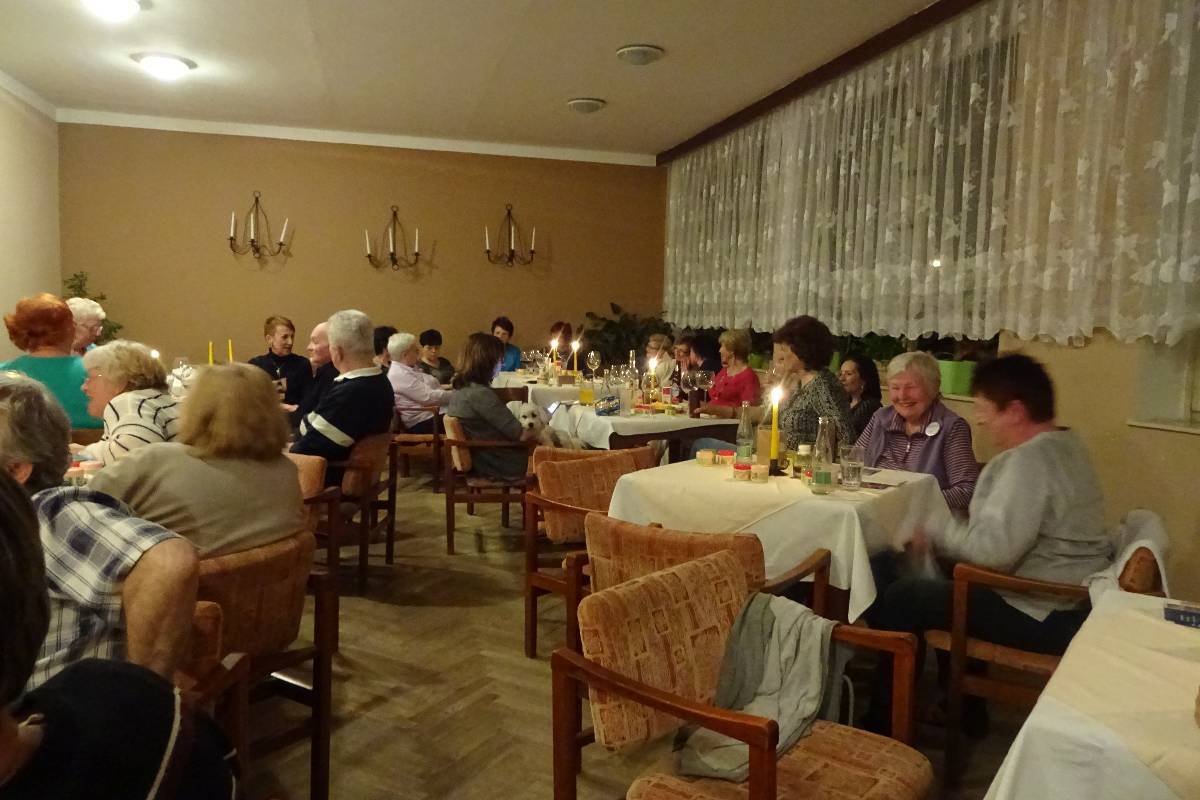 Večer se nesl v duchu hesla, že tahle země není jen pro mladý. Vládl čilý výměnný obchod i vzájemné kamarádské obdarovávání, výměna pro život nezbytných informací, tlachání, klevetění, popíjení, dohadování se jestli se ukáže Honza, zpívání a tančení při hudbě, kterou pro nás vybral Laďa Šimůnek.