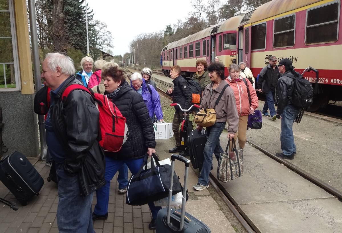 Pro velkou sílu íčkařů jsme se spolu s ostatními autaři vydali na nádraží k vlaku. Tam jsme se chvíli dohadovali, z které strany kýžený rychlík přidrandí a kterým směrem tak asi může být Praha, až rychlík stál u perónu. A z něj se začali vysypávat jeden po druhém íčkaři obtížení kufry, batohy a dokonce i koloběžkami.