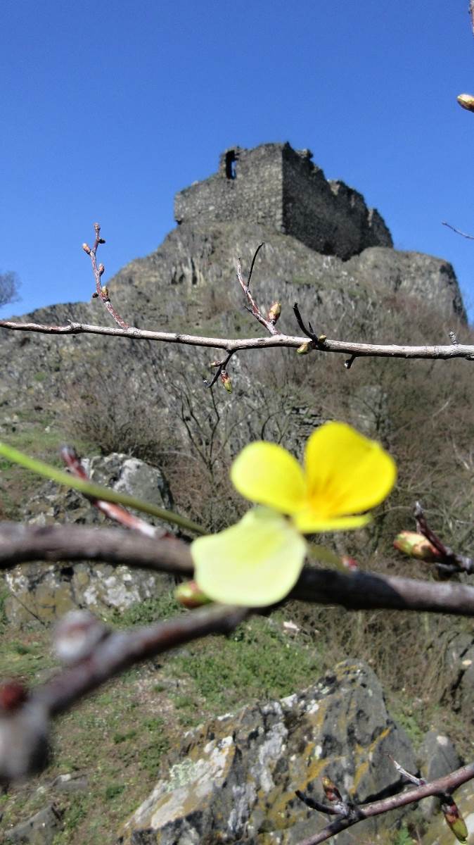 Duben v samém začátku měsíce nám nabídl krásné počasí, a tak jsem toho využila k uskutečnění výšlapu na hrad Košťálov, kde jsem ještě nikdy nebyla. Nejlepší přístup je od vesnice Sutom, kde jsme zanechali auto a vydali se lesem na zříceninu. Když jsem stanula na vrcholku, nabídl se mi jeden z nejnádhernějších rozhledů na České středohoří.