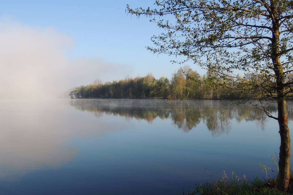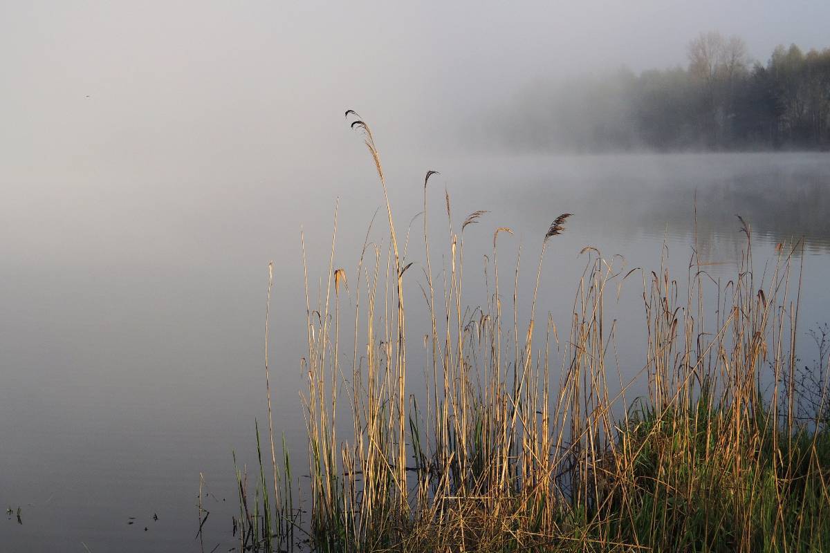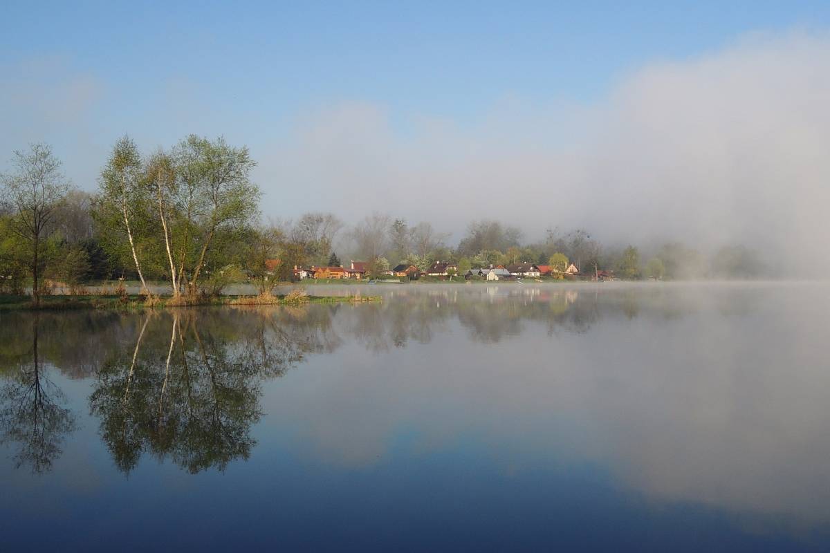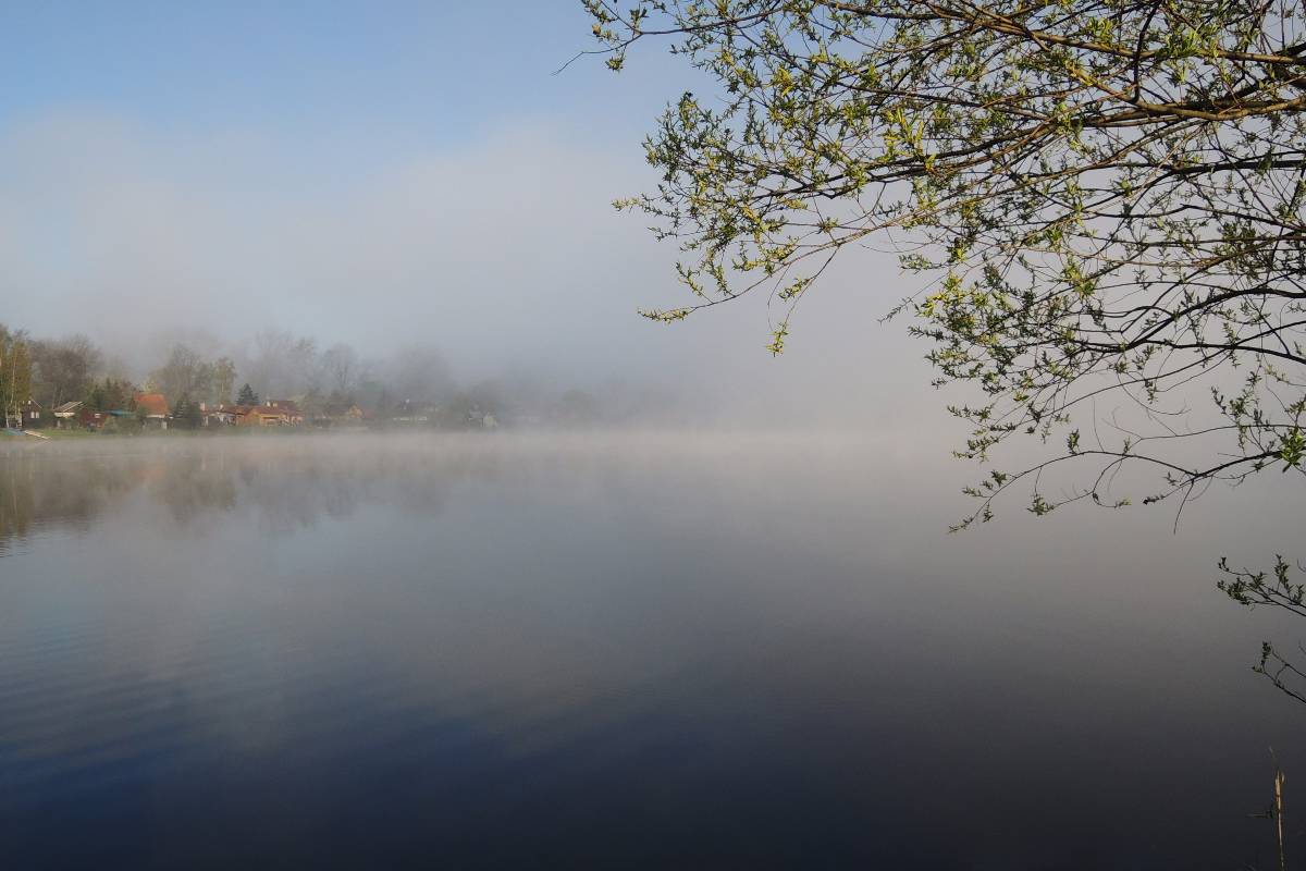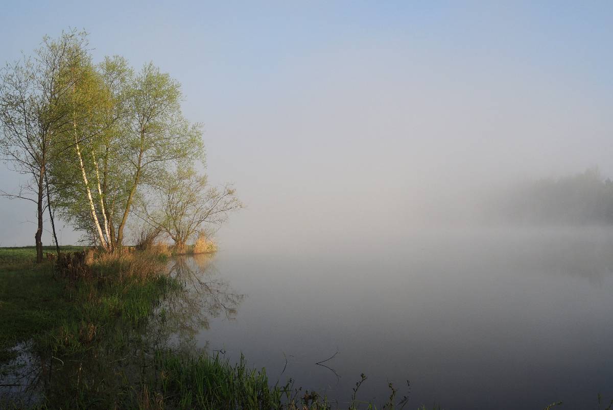 První zastávka byla u „Štěrkáče“ v Hustopečích nad Bečvou. Z dobývání štěrku vznikla vodní plocha, která slouží k rybolovu a rekreaci. Kolem sedmé hodiny jsem hladinu tušila, ale neviděla. Vše bylo skryto v husté mlze. To budou záběry. S přibývajícím slunečním svitem se mlha rozpouštěla a já cvakala a cvakala.