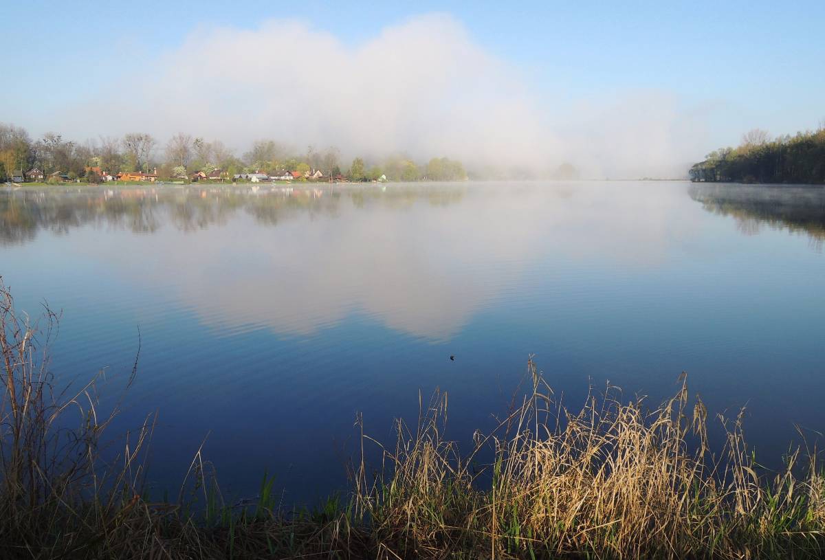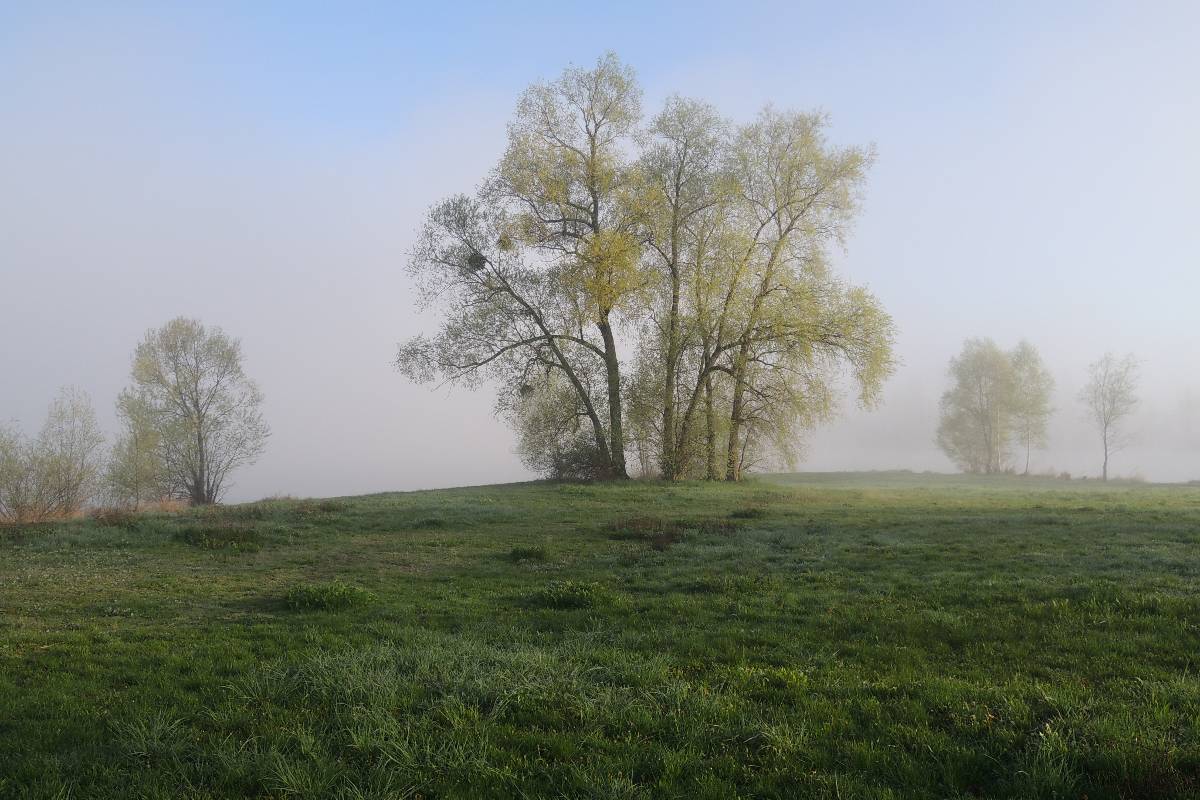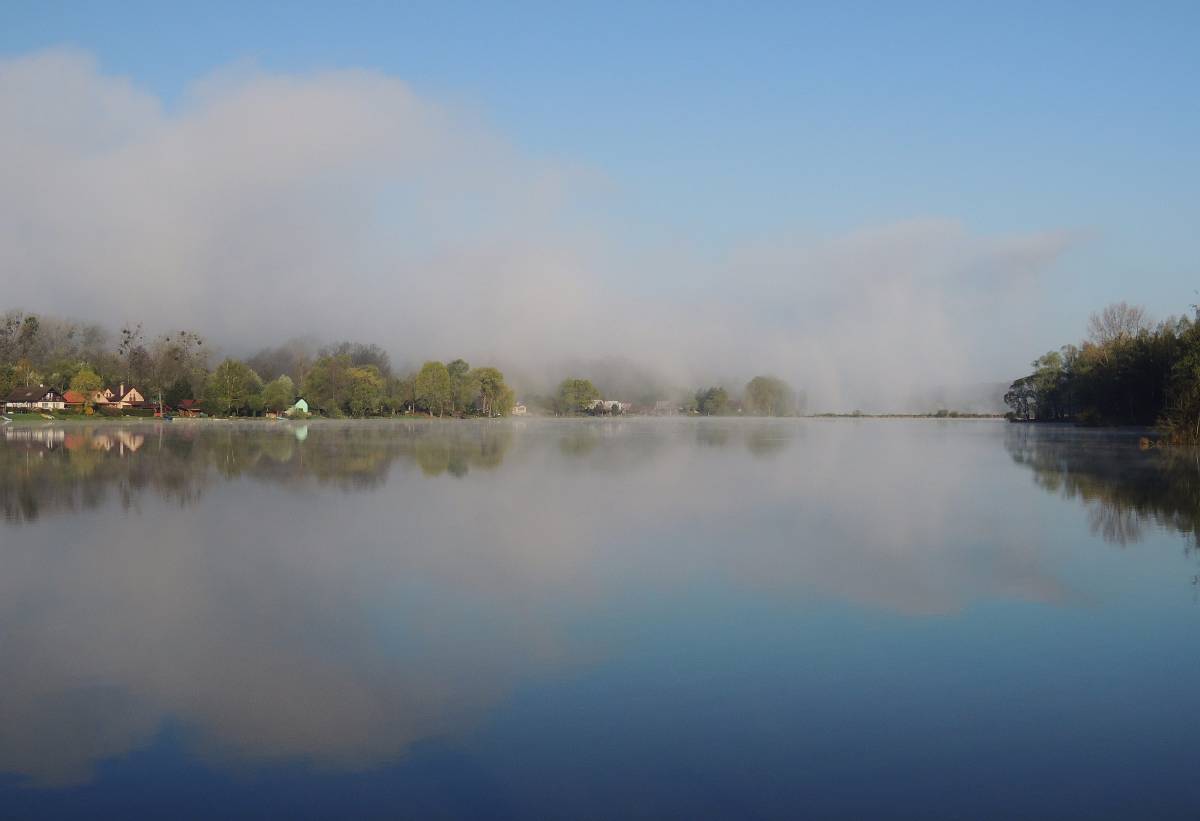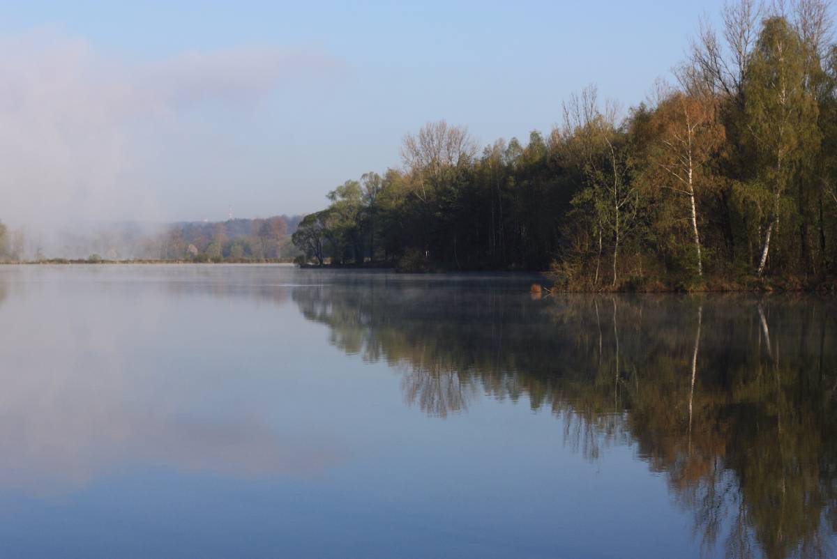 První zastávka byla u „Štěrkáče“ v Hustopečích nad Bečvou. Z dobývání štěrku vznikla vodní plocha, která slouží k rybolovu a rekreaci. Kolem sedmé hodiny jsem hladinu tušila, ale neviděla. Vše bylo skryto v husté mlze. To budou záběry. S přibývajícím slunečním svitem se mlha rozpouštěla a já cvakala a cvakala.