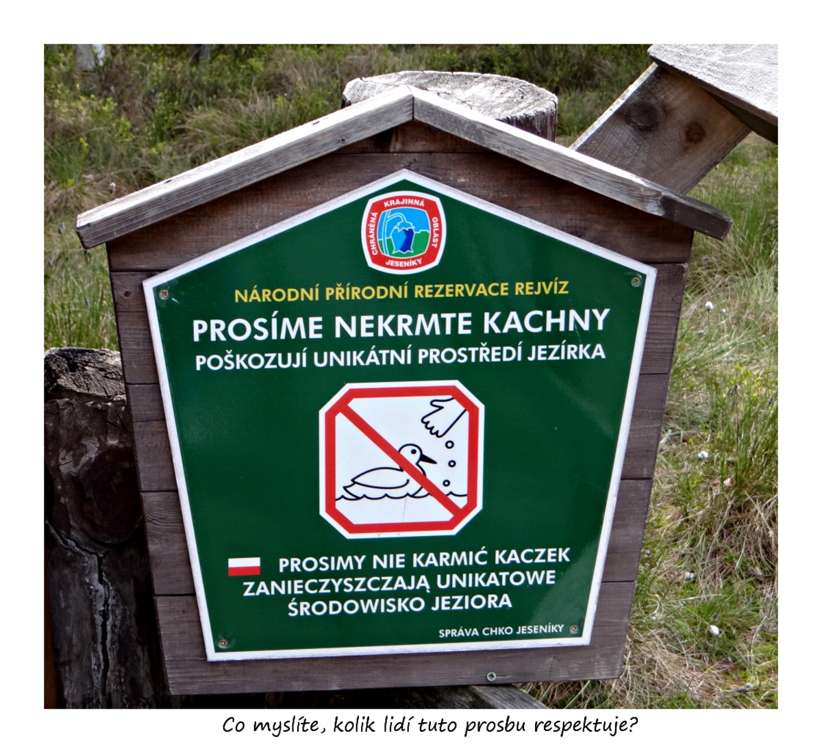 Chovejte se tiše a šlapejte pouze po dřevěném chodníku, který sem tam už volá po opravě, právě jsme totiž vstoupili do národní přírodní rezervace Rejvíz, která patří mezi nejstarší rezervace na území Jeseníků, byla vyhlášena již v roce 1955 a její rozloha je 329 ha. Po podobném chodníku turisté šlapou už od 70. let 19. století. Naučná stezka nás seznámí se vznikem rašelinišť, dozvíte se zajímavosti o mokřadních bylinách a na konci stezky si vychutnáte plnými doušky klid u Velkého mechového jezírka. V letošním roce by se mělo dočkat opravy nejen odpočívadlo přímo u jezírka, ale doufám, že i přístřešek kouzelné studánky. Ptáte se, v čem je kouzelná? Její voda má totiž tu moc, že když se v ní umyjete, tak jste zaručeně čistější. Nevěříte?