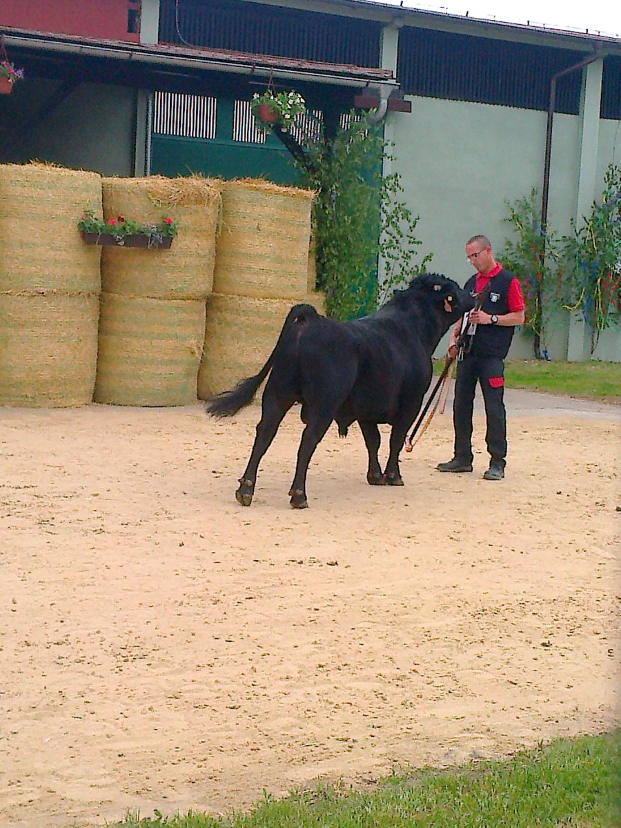 V areálu plemenářské sanice byla příjemná atmosféra, potkali jme se s několika známými. Po dobrém obědě – podávali hovězí guláš, následovala přehlídka. Nejprve předváděli býky dojných plemen, po nich býky masných plemen. Opravdu bylo nač se dívat. Jako novinka mezi chovnými kusy byl předveden býček plemene dextr z chovu Karla Rodena. Myslela jsem si, že je to pouhá shoda jmen, ale ukázalo se, že chovatelem je opravdu herec Karel Roden. Plemeno dextr pochází z Irska, jsou to potomci původního skotu Keltů a pan Roden jich má celé stádo. Kravičky jsou malého vzrůstu, vhodné pro začínající chovatele.