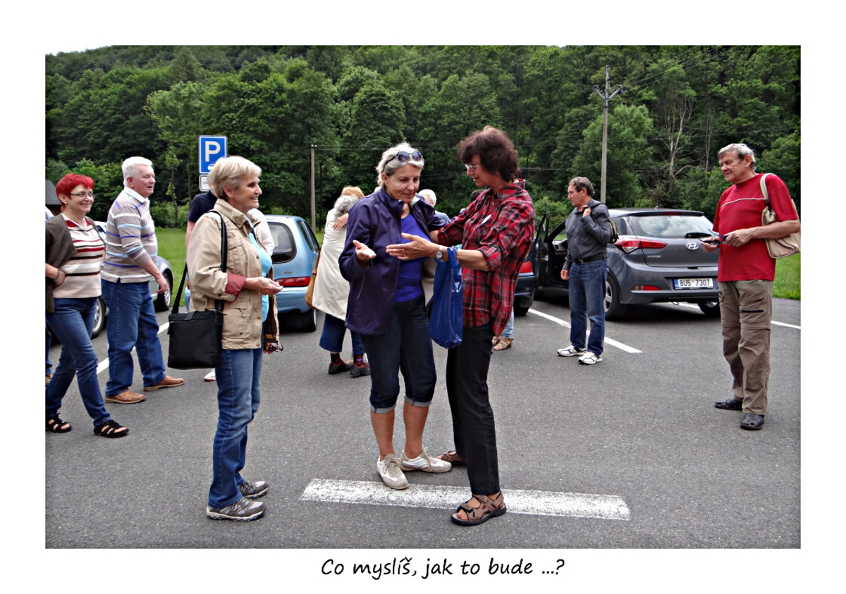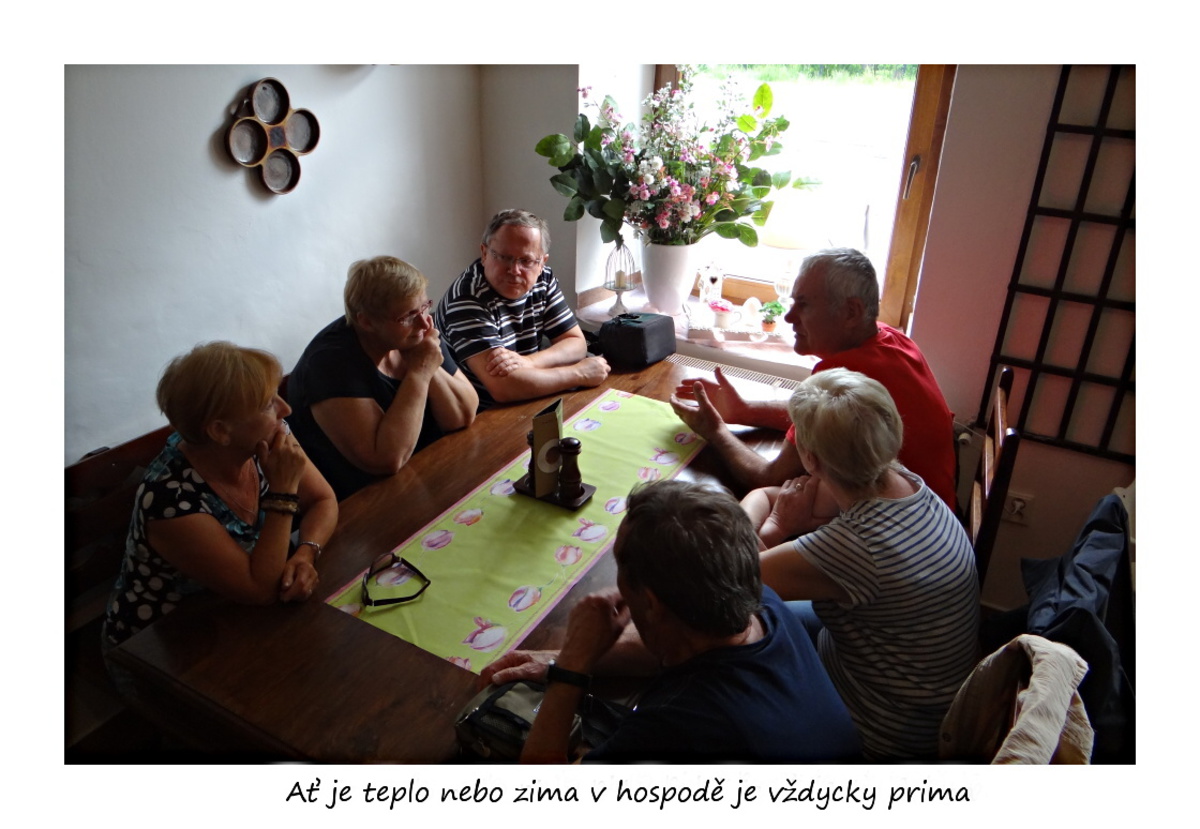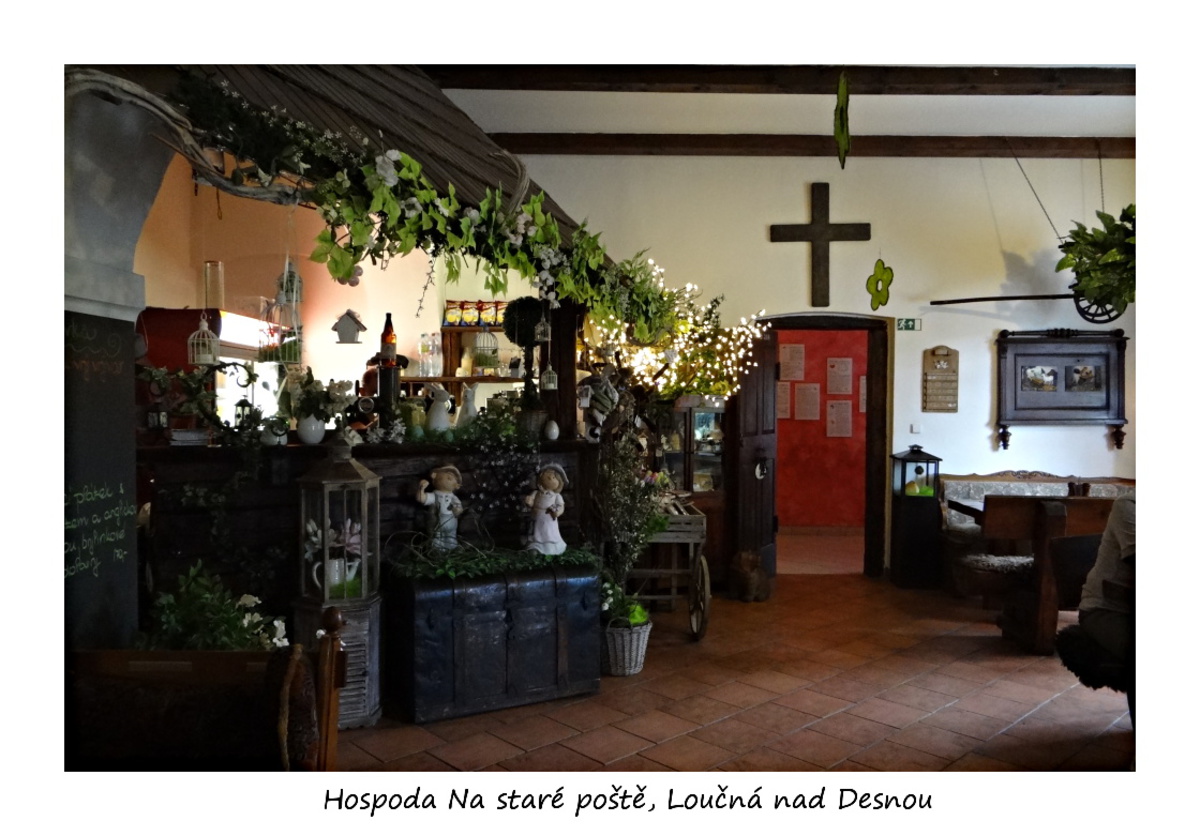 Po příjezdu všech jsme se vybrali na procházku obcí Loučná nad Desnou, kterou nás ráda provedla Majka Seitlová. Společně s Hankou Práglovou měly organizaci pevně v rukách. Procházkou jsme se vydali na prohlídku zámeckého parku, samozřejmě udělali pár foteček (každý, takže jich budou desítky, za celý pobyt stovky). Procházku jsme zakončili v hospodě Na staré poště. Moc pěkná hospůdka i když na vídeňské kávě byla čepice z kyslé šlehačky, ale po reklamaci nám byla káva vyměněna.