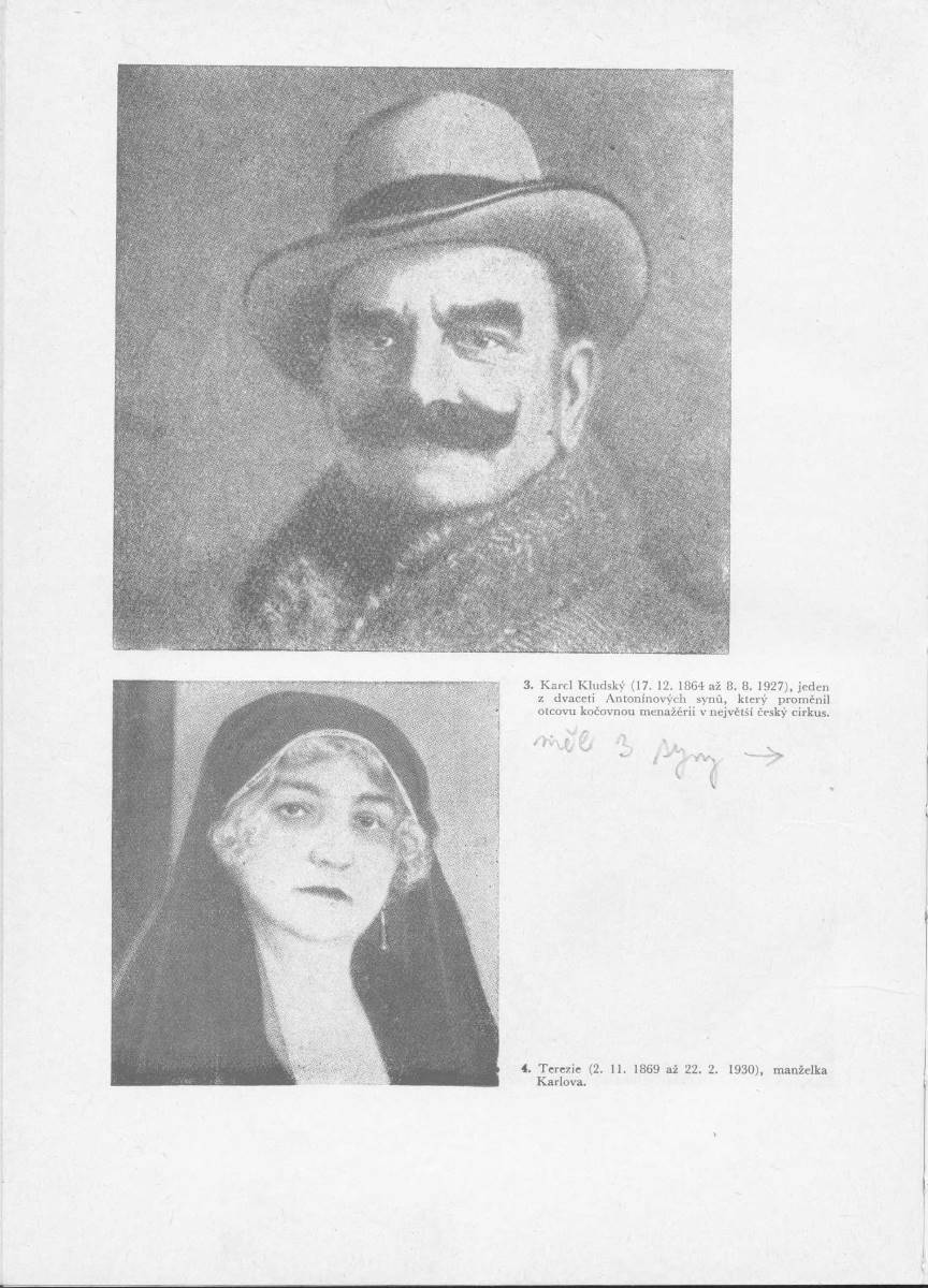 Kdepak třetí, to jde moc daleko do historie až mezi šumavské komedianty. Já sám jsem se narodil v r.1891, bratr Rudolf o dva roky později a třetí Jindřich padl v I.světové válce. A od malička jsem dělal cirkus. Až do krize v r.1934 - tehdy všechno skončilo.
