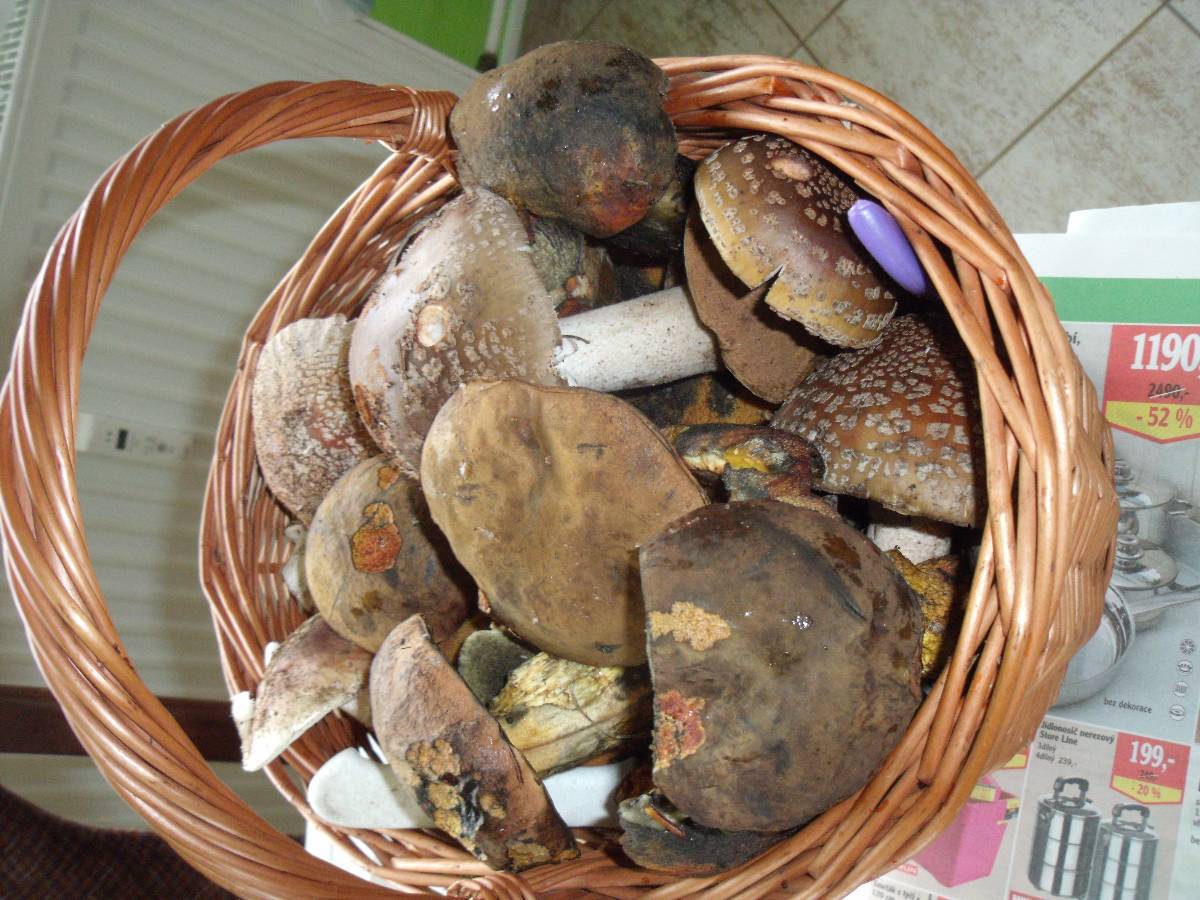 Včera jsme v Mariánkách viděli prvního opravdového hřiba a hodně růžovek (masáků), tak jsme se dneska vydali prozkoumat naše lesy. V prvním, který byl listnatý, jsme nenašli ani ťuk, dokonce ani prašivky tam nebyly. Tak jsme popojeli o kus dál a potkali jsme pána s plným košem hub. Takže jsme zaparkovali a šli zkusit štěstí. Za půl hodinky jsme měli košík plný - dnes to byli jen kováři a růžovky. Pěkné, zdravé kousky.