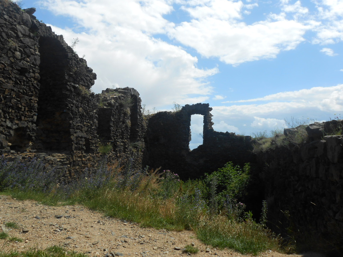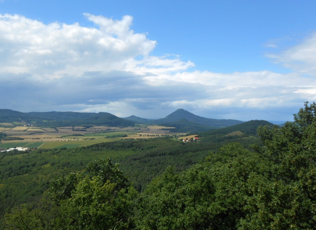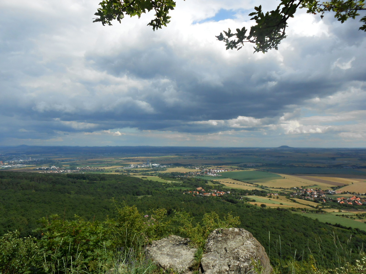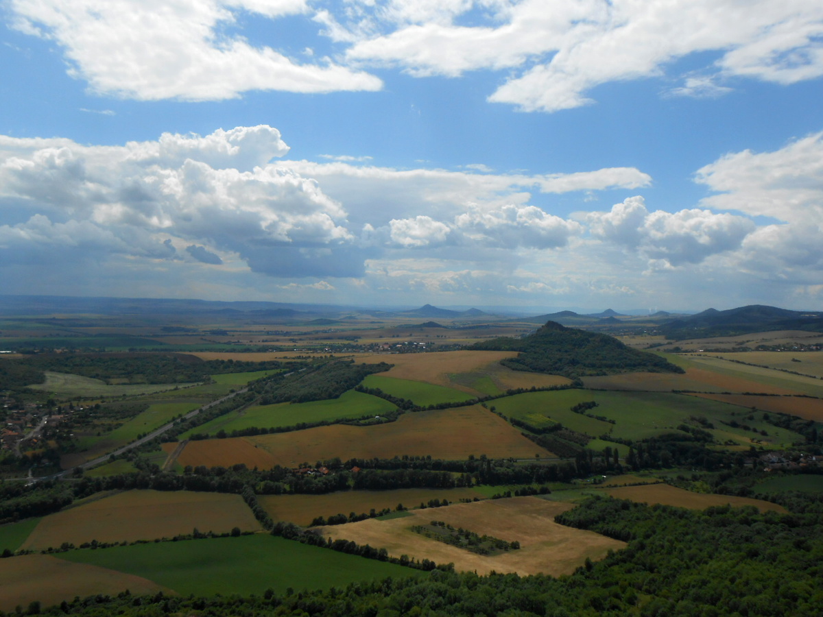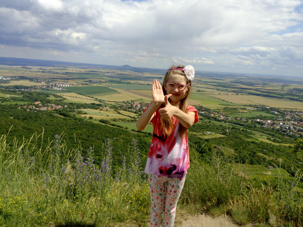 Pohled, který se nám naskytl, vyvážil můj dýchavičný výstup. Byla to opravdu krása. Na jedné polovině nádherné kopce Českého středohoří a na druhé Polabská nížina, které dominoval nedaleký Házmburk a o kousek dál Říp. Barvy léta nemají chybu. Fotila jsem o stošest a bylo opravdu co. Jednu zajímavost jsem se dočetla. Prý je na hradě ukryt poklad, který hlídá pes s ohnivýma očima, ale my jsme nenašli ani psa ani poklad. Lze se k němu dostat jen na Květnou neděli.