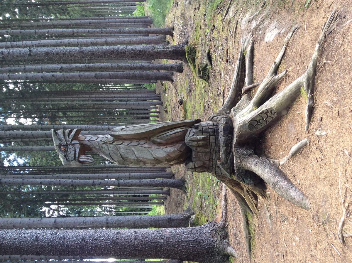 Výlet to ale nakonec byl senzační, 4 hodiny pohodové chůze zajímavě zvlněnou krajinou a tak trochu pohádkovým lesem plným překvapení. I to počasí se docela umoudřilo, zmokli jsme až úplně v závěru, pár metrů od zaparkovanýho auta.
