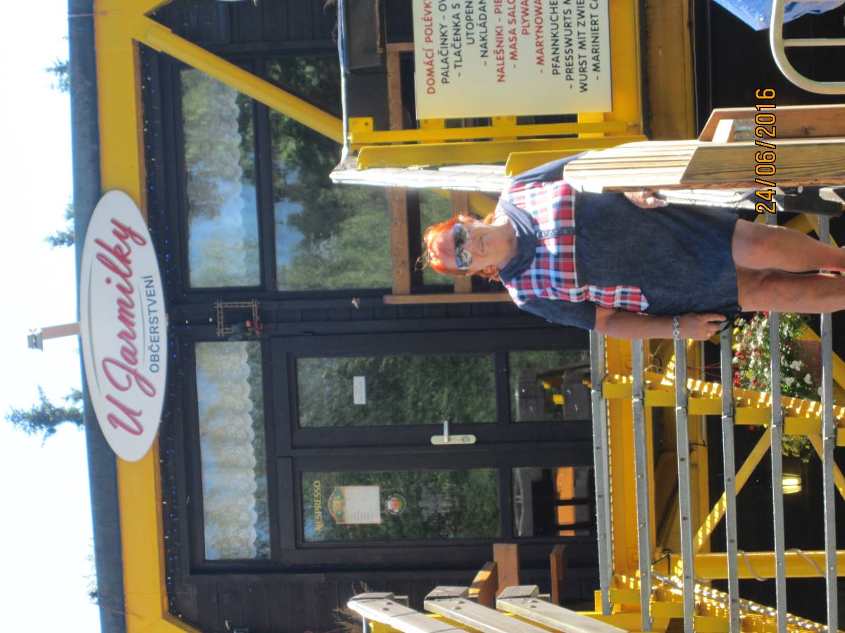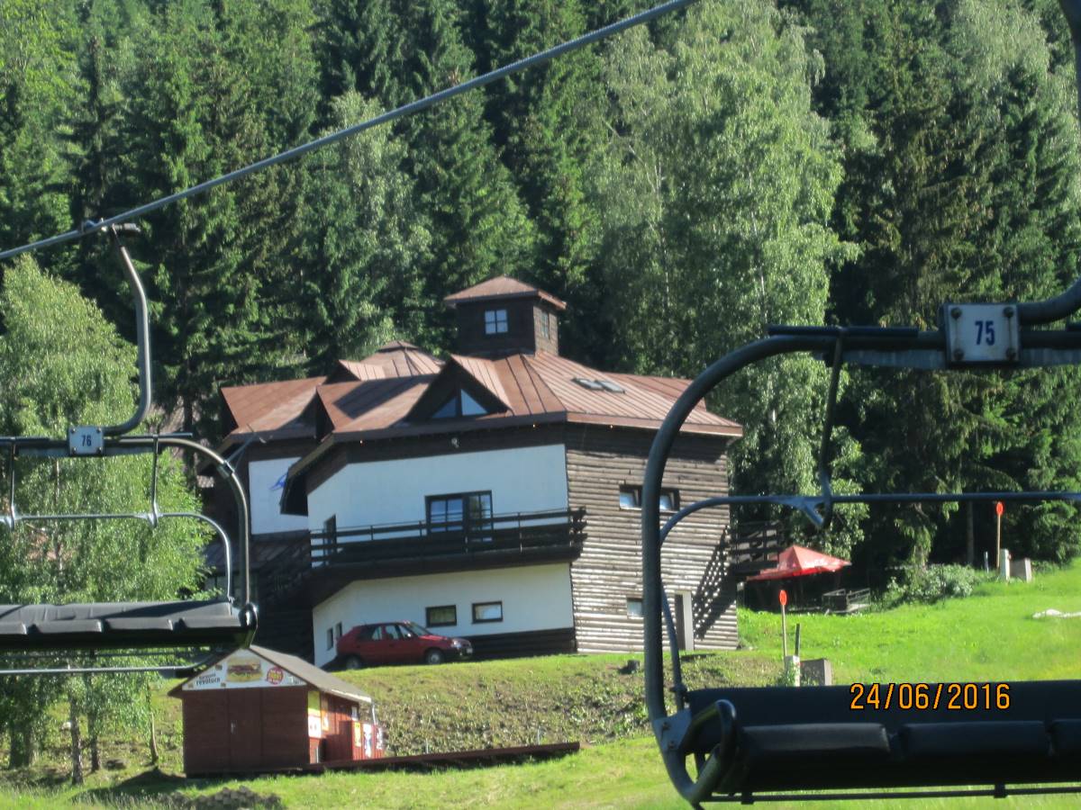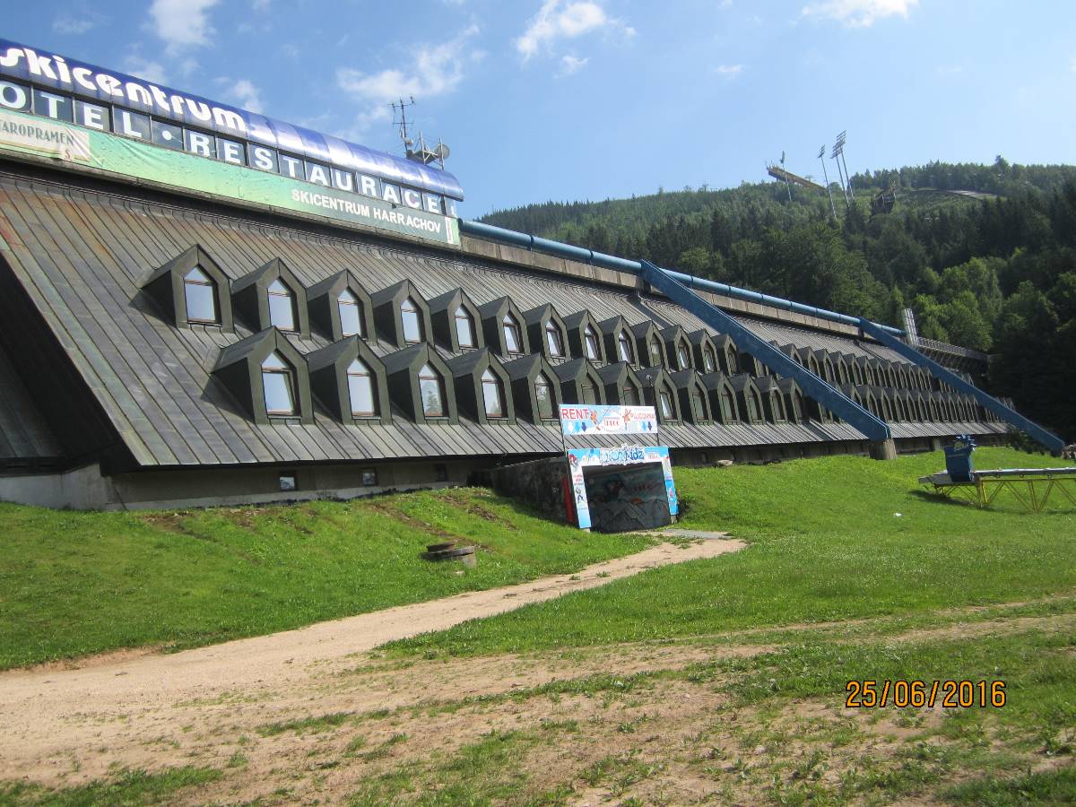Čertova hora je opravdu obrovský kopec ve výšce 1 020m, na kterém se nachází největší mamutí můstek pro lety na lyžích v České republice. První můstek zde byl postaven v r. 1920 a "Mamut" byl vybudován v r. 1980. Na Mamutovi se uskutečnila řada vrcholových soutěží včetně mistrovství světa. Vrchol hory poskytuje krásné vyhledy do okolí a je skvělým výchozím místem por pěší turistiku. Na Čertově hoře je také startovací plocha pro vyznavače létání na padácích a závěsných kluzácích. Na vrchol hory jezdí lanovka a tou jsme i my jely. Bohužel jsme špatně vyhodnotily situaci, protože jsme na vrchol jely až v 17 hod. A tak zpět dolů jsme musely šlapat pěšky. Jednalo se o úzkou cestičku, na které byly velké šutry a sešup byl velmi příkrý. Přiznám se, že jsem si sáhla na dno sil, a když jsme se dostaly po značném úsilí a vyčerpání do hotelu, každá jsme vypila 2 piva.