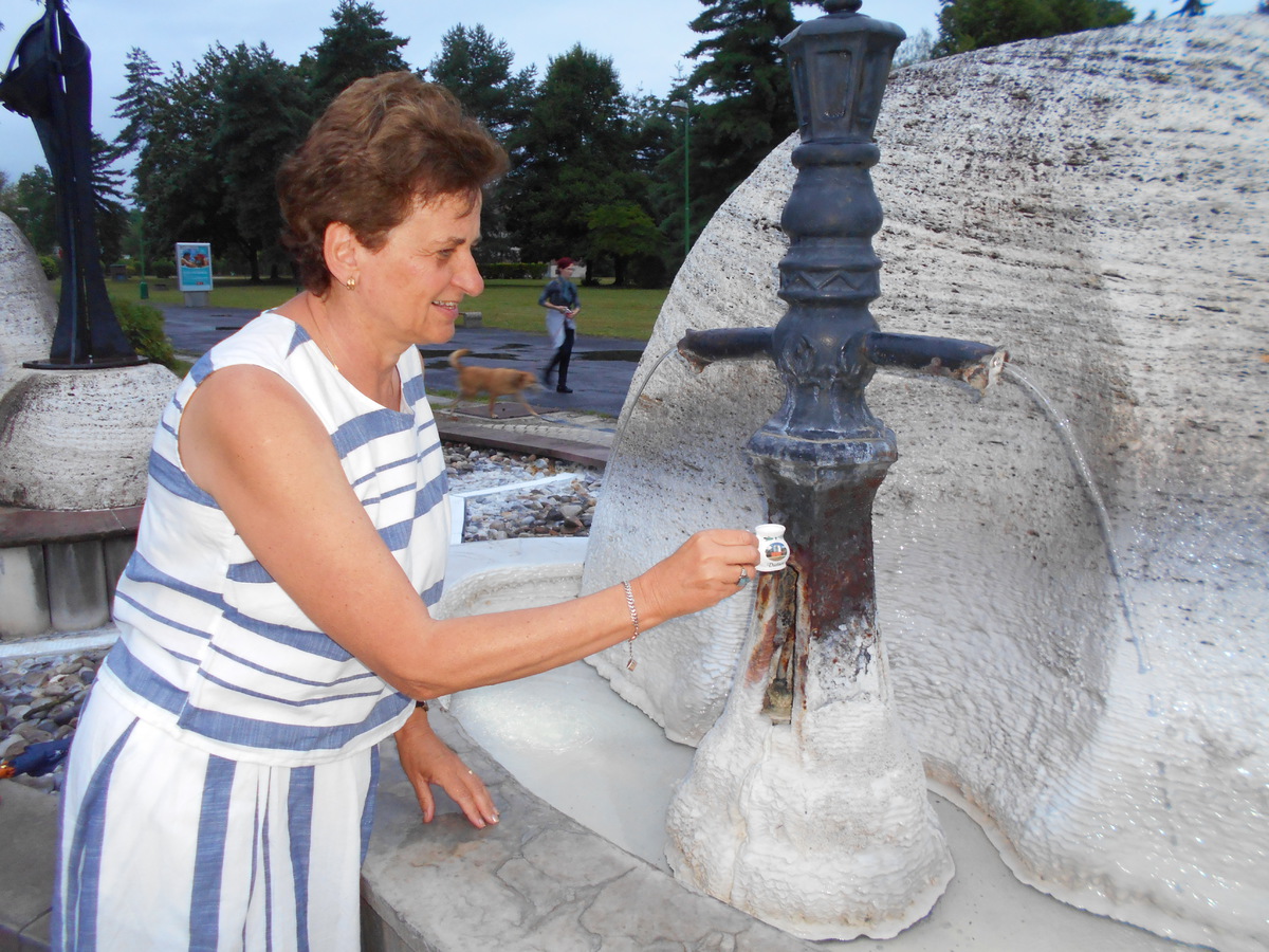 Senioři mluví slovensky i maďarsky. Dříve byly hranice Maďarska až po Levicu. Také jsem navštívíla kostel sv. Pany Marie, kde se konaly bohuslužby každý den v 19 hodin. Přišlo téměř 100 lidí, kteří nahlas zpívali a modlili se. Procházkou parkem jsem ochutnala minerální vodu s teplotou 27 stupňů.
