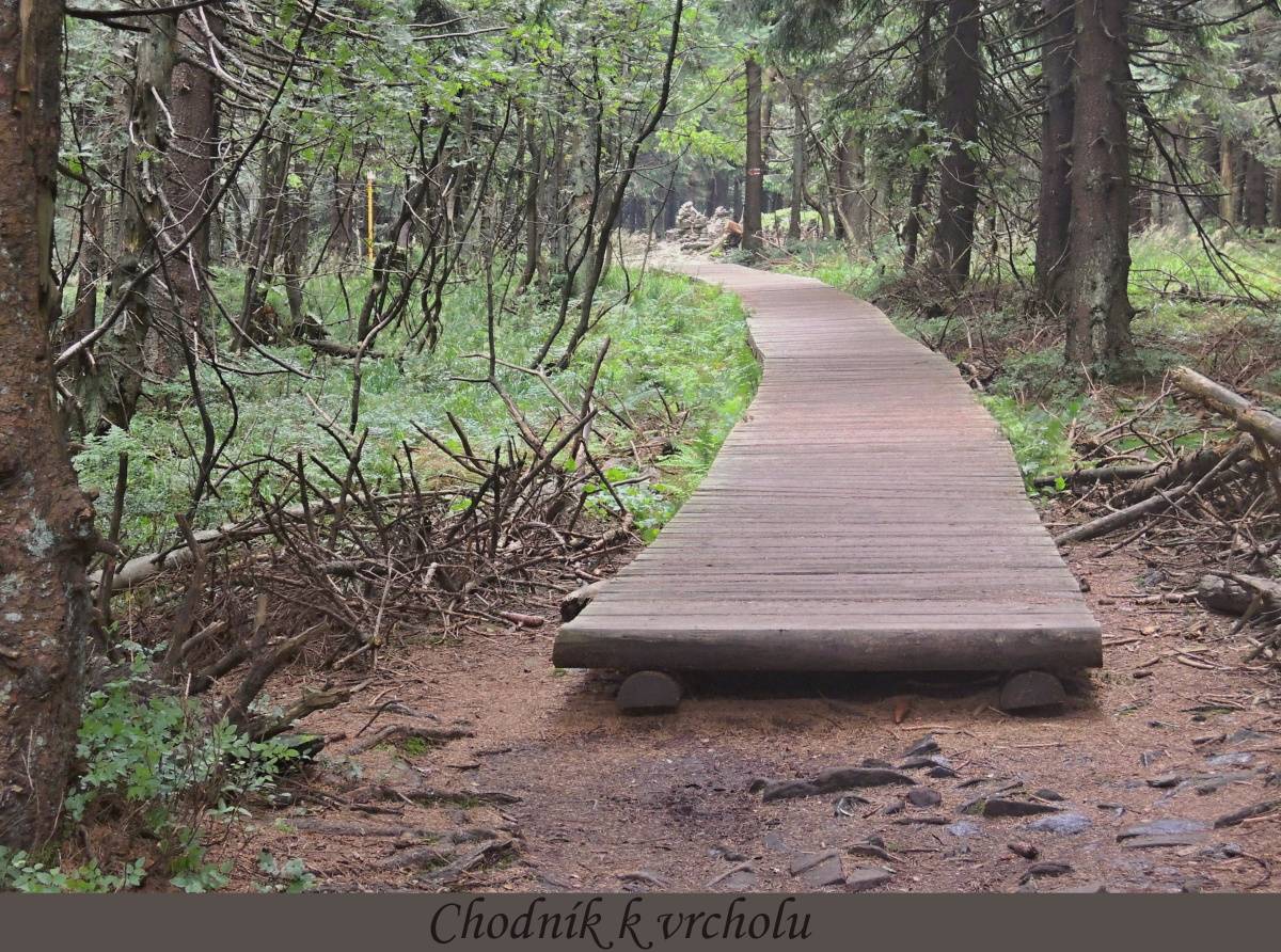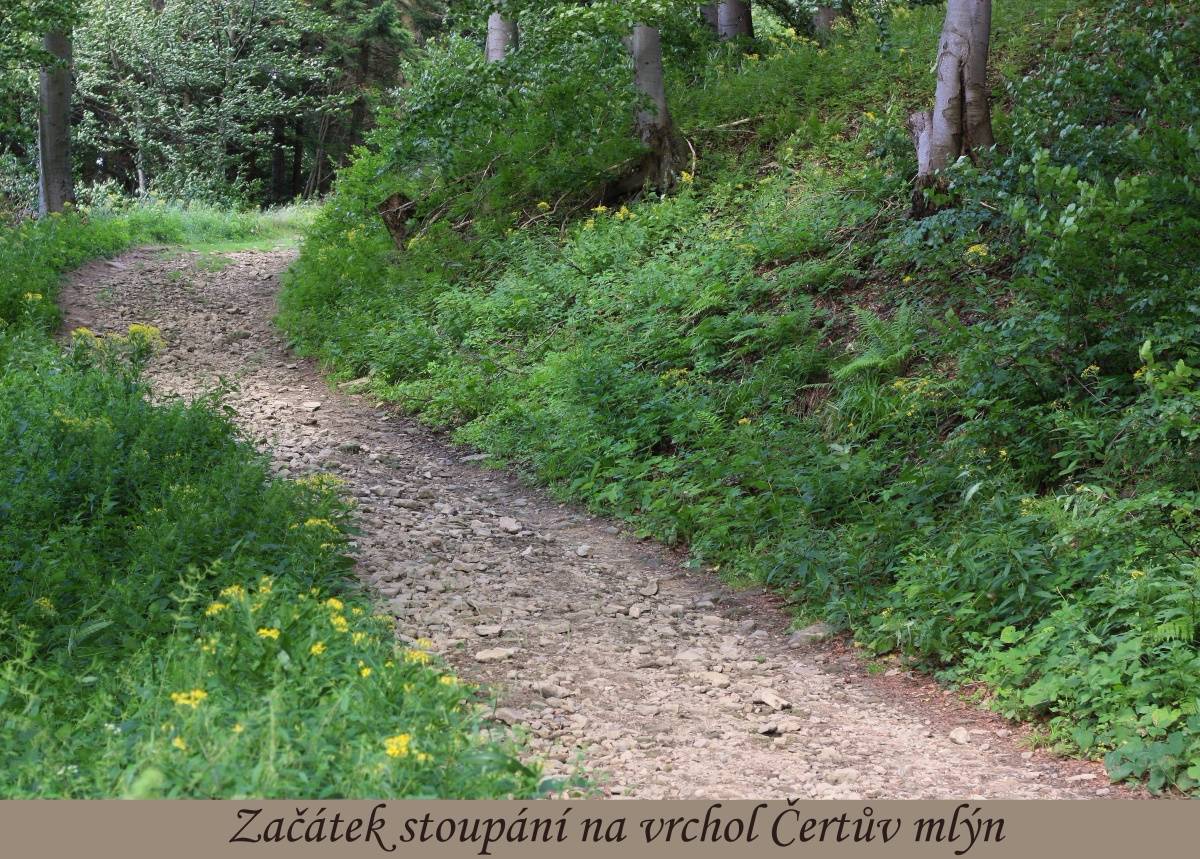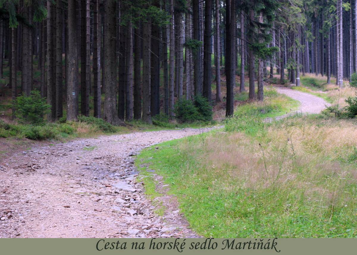 Většina turistů směřovala na Radhošť, my se vydali opačným směrem do sedla vrcholu Tanečnice a dále na vrchol Čertův mlýn (stoupání v délce 2,5 km). Procházeli jsme přírodní reservací, kde je přirozený les se spoustou odumřelých stromů. Na vrcholu jsme si krátce odpočinuli a pokračovali k horskému hotelu Martiňák. Cesta vedla lesem (pouze jedna vyhlídka), klesání v délce 4 km, spousta borůvek a žádný turista. Prostě paráda.