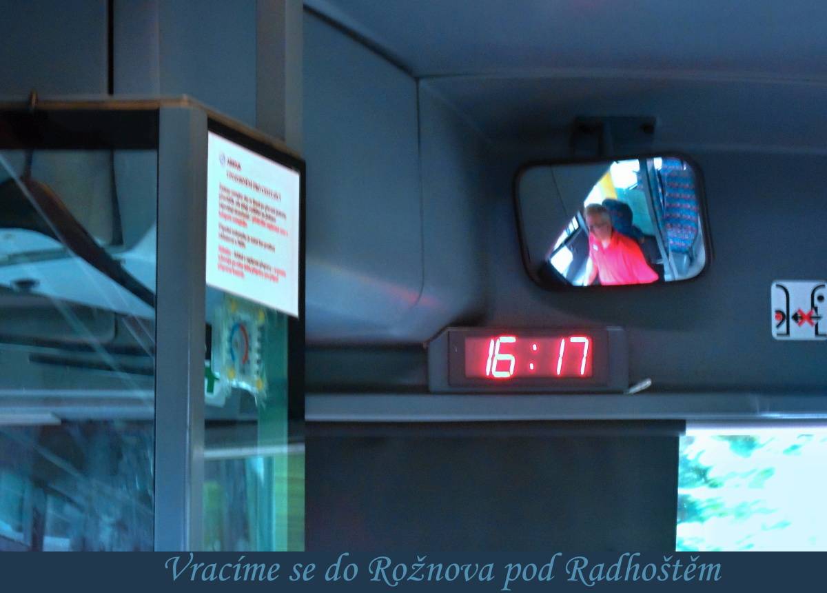 Na závěr výšlapu jsme měli veliké štěstí. Obloha potemněla, hnala se bouře a my neměli tušení, v kolik hodin odjíždí autobus z Horní Bečvy do Rožnova. Jen co jsme došli na hlavní cestu, autobus přijížděl. Za patnáct minut jsme byli v Rožnově, ne však doma. Ještě jsme zašli do nejbližší restaurace na pivo a taky jsme se tam ukryli před deštěm.