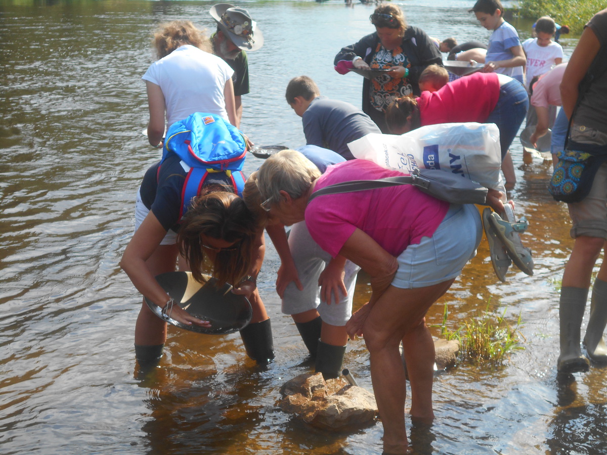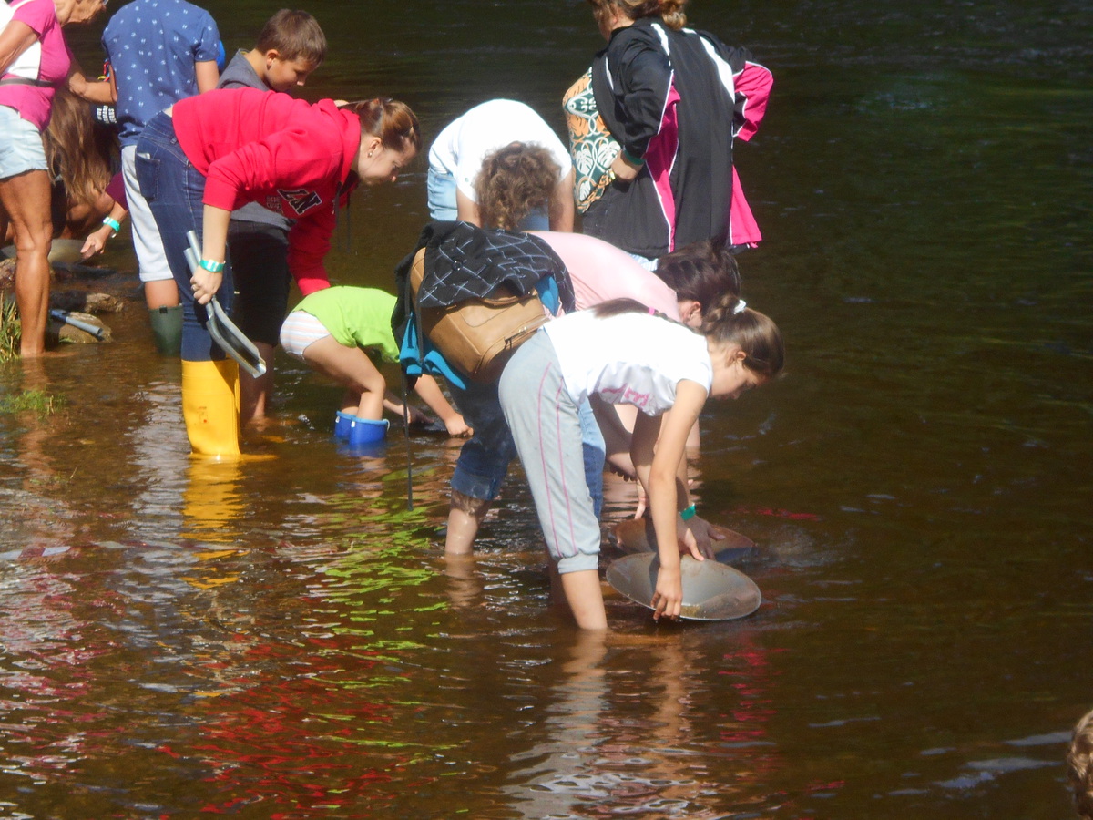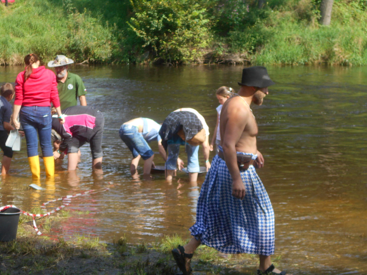 Druhý den v dopoledních hodinách i odpoledních hodinách probíhá soutěž. Může se přihlásit každý, letos bylo kolem stovky zájemců. Dostanou tzv. čínskou pánev a lopatku. Naberou štěrk, setřesou kameny a krouživými pohyby pod vodou vyplavují prach a na dně jim možná zůstane zlatinka. Jde o drobné zrníčko, které mikroskopem zhodnotí odborník. Kdo má nejvíce nasbíraných zlatinek vyhrává a může si ponechat na památku.Od sponzorů dostane nějaký dárek.