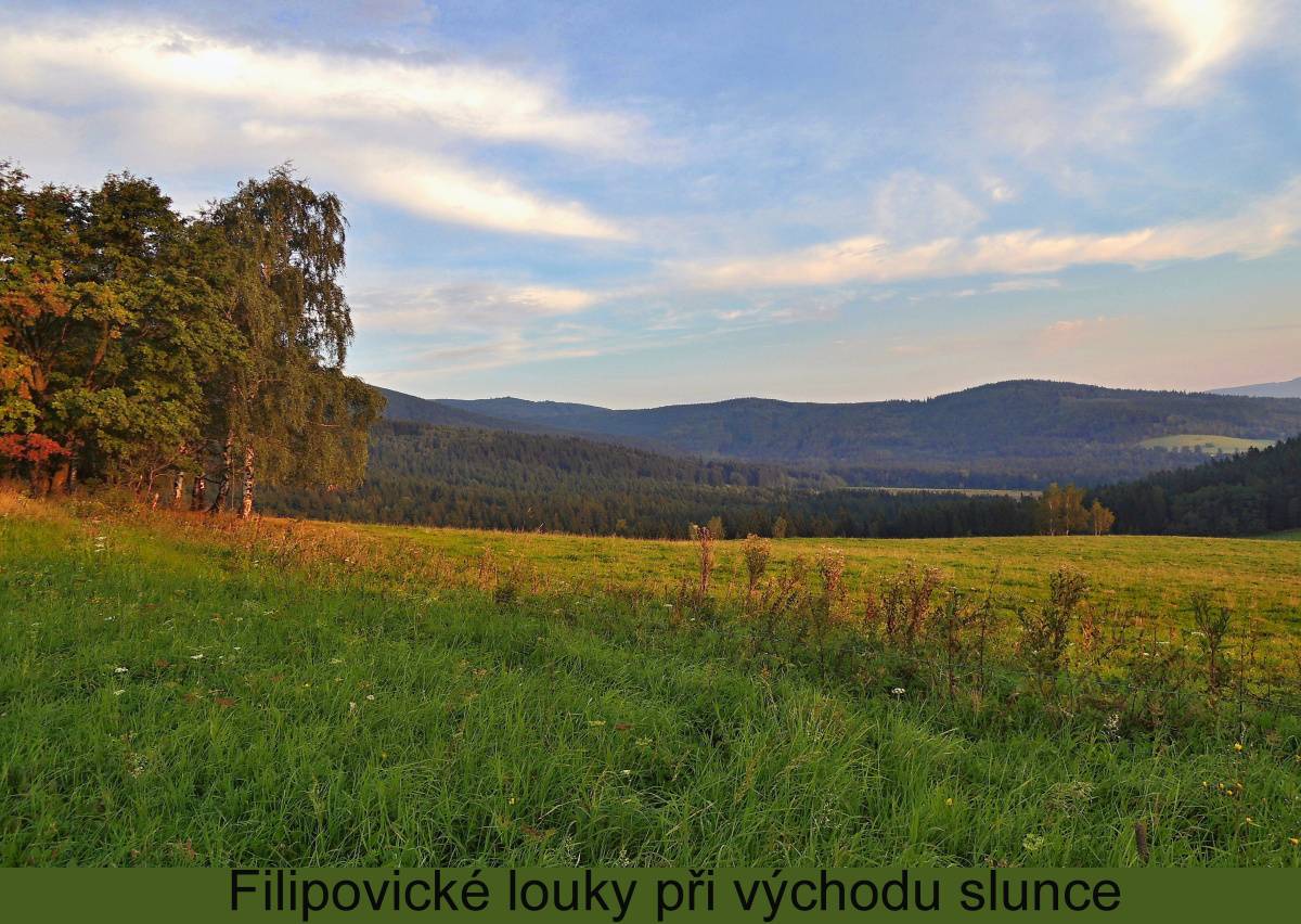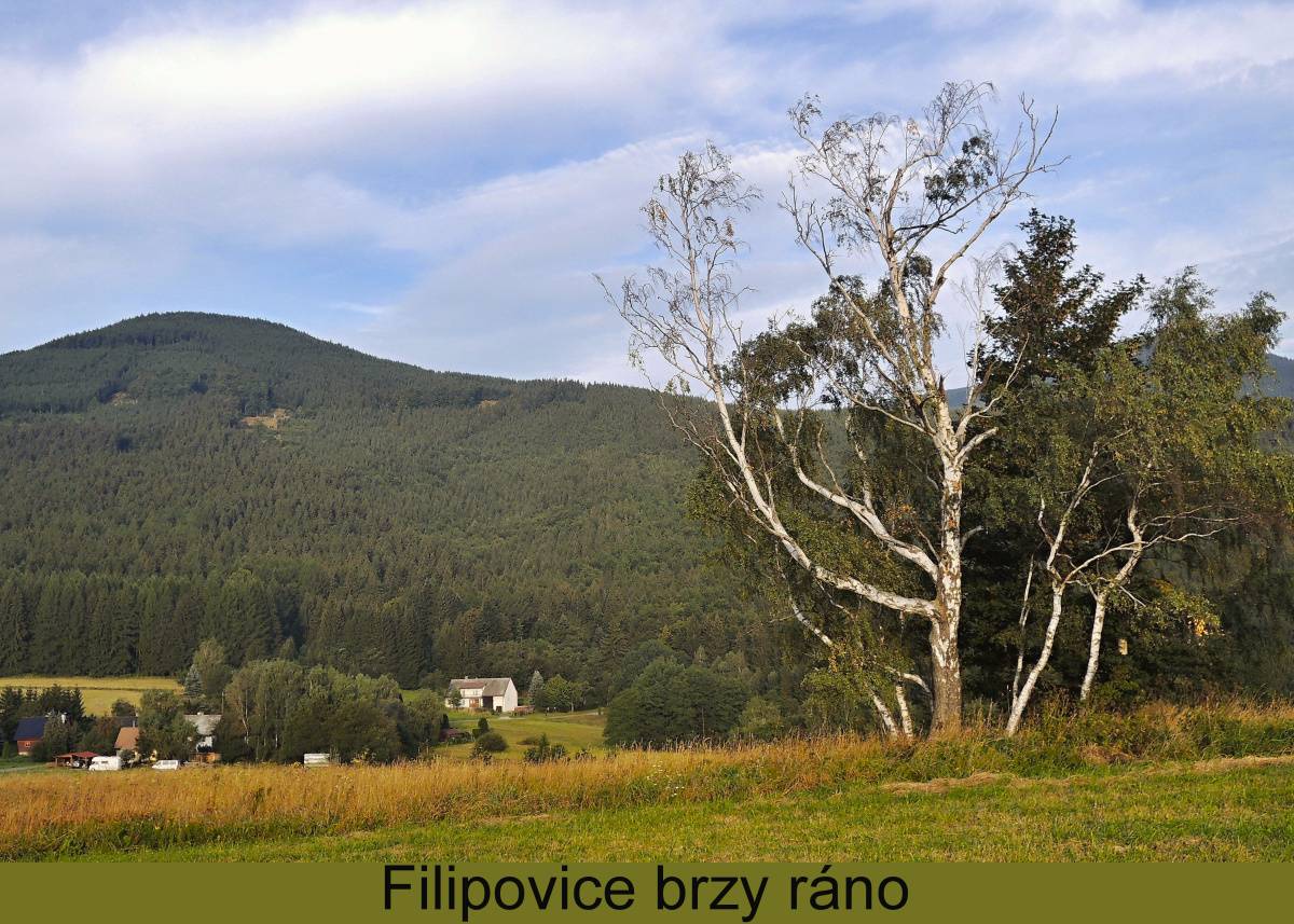 Penzion Pepovka v malé osadě Filipovice byl místem našeho pobytu. Hřiště a dětská herna, vyhřívaný bazén se slanou vodou a vířivkou, sauny, venkovní posezení a restaurace -  to vše bylo k dispozici a my to využili. A k tomu krásné letní počasí a kouzelná příroda. Jeden den jsme měli výletní. Navštívili jsme Jeskyni Na Špičáku, která je nejstarší jeskyní střední Evropy a často sloužila jako úkryt. Velmi zajímavá byla návštěva hornického skanzenu v Údolí ztracených štol. Zde jsou funkční repliky zlatorudných mlýnů ze 14.století, které připomínají časy největší slávy dobývání zlata v okolí Zlatých Hor. Dokonce i rýžování zlata jsme si vyzkoušeli, ale nedařilo se, nezbohatli jsme. Nejvíce se však vnukům líbilo v lese a na loukách v okolí penzionu.