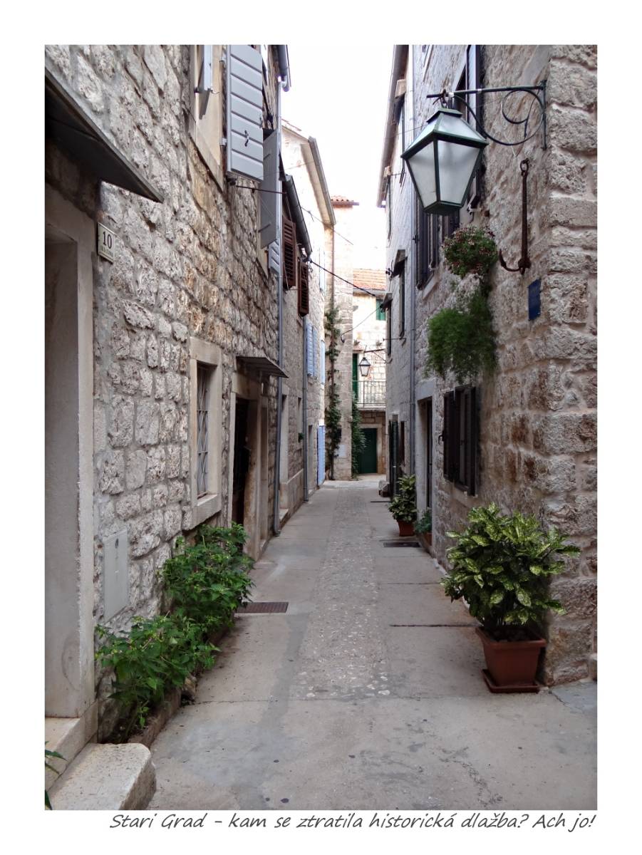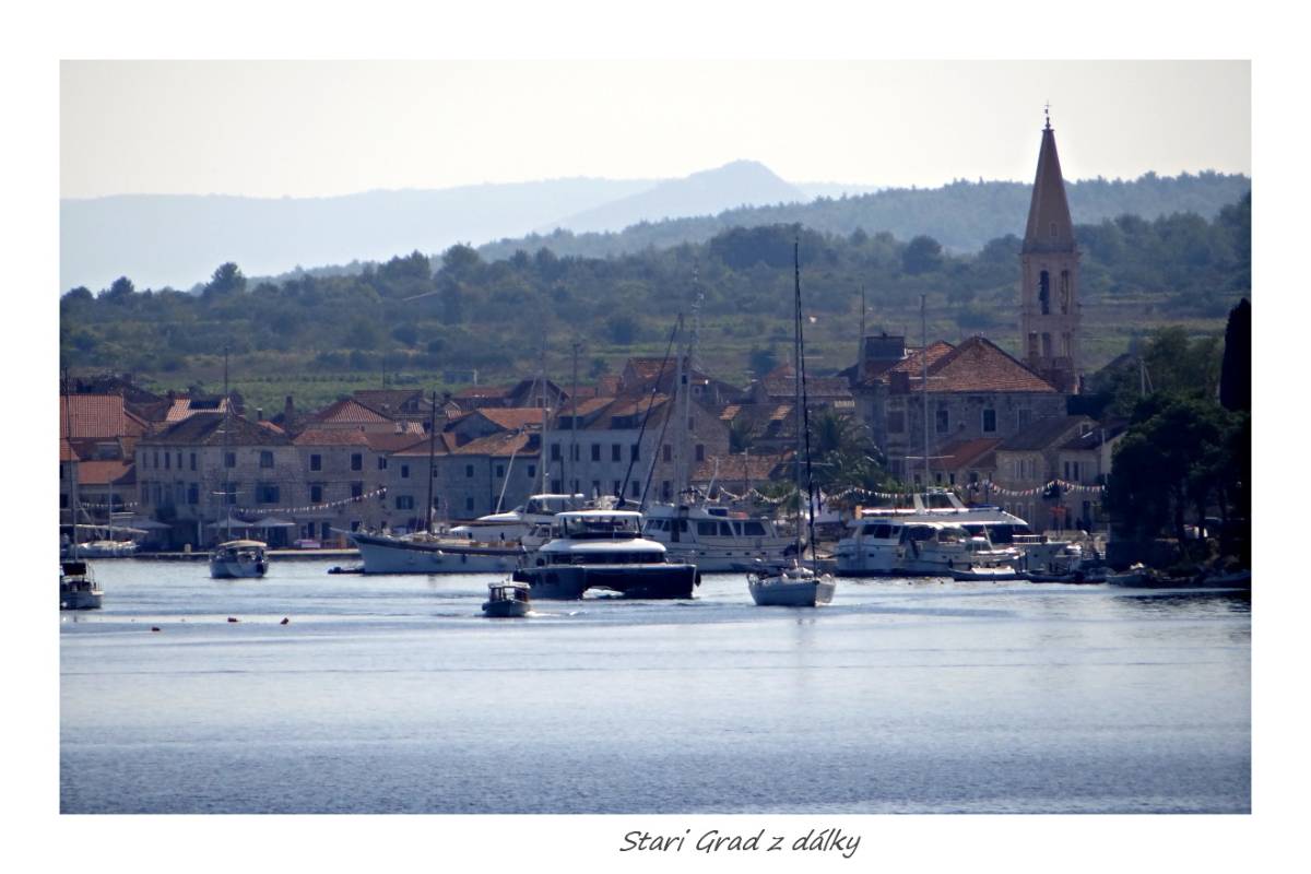 Stari Grad: malebné starobylé městečko je rozprostřeno v zálivu a my máme to štěstí, že se v den našeho příjezdu začíná slavit 2400 let od jeho založení. Zároveň je tam Festival moře. A plachetnice. Desítky malých, velkých, nádherných. Ale to vše uvidíme až následující večer. Tisíce lidí se vešlo právě tento večer na pobřežní promenádu. Stánky, hudba, zmrzlina. Parádní atmosféra teplého letního večera.