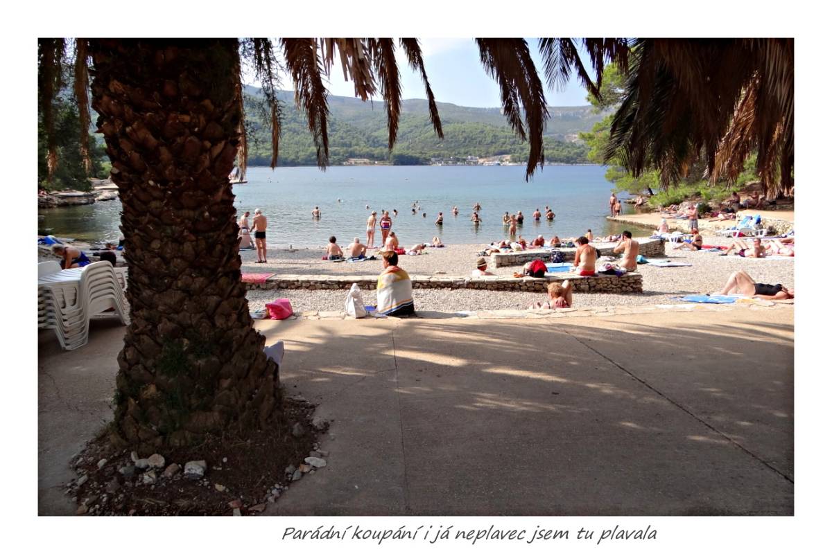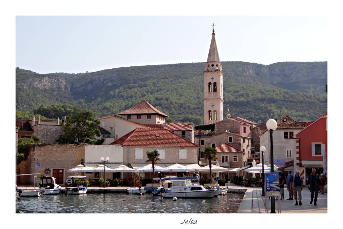 Autobus nás odváží do Jelsy, kde je prý slabý pramen pitné vody, která však nestačí ani pro obyvatele Jelsy. Všechny chorvatské ostrovy, až na ostrov Vis a ještě jeden, který jsem si nezapamatovala, jsou zásobovány podmořským vodovodem z pevniny. Měla jsem strach, že budeme trpět nedostatkem vody, ale obavy byly zcela zbytečné. Voda byla dobrá a bylo jí dost. V Jelse jdeme houfně na zmrzlinu, dva kopečky zaplatit a třetí je gratis. No, nedej si!