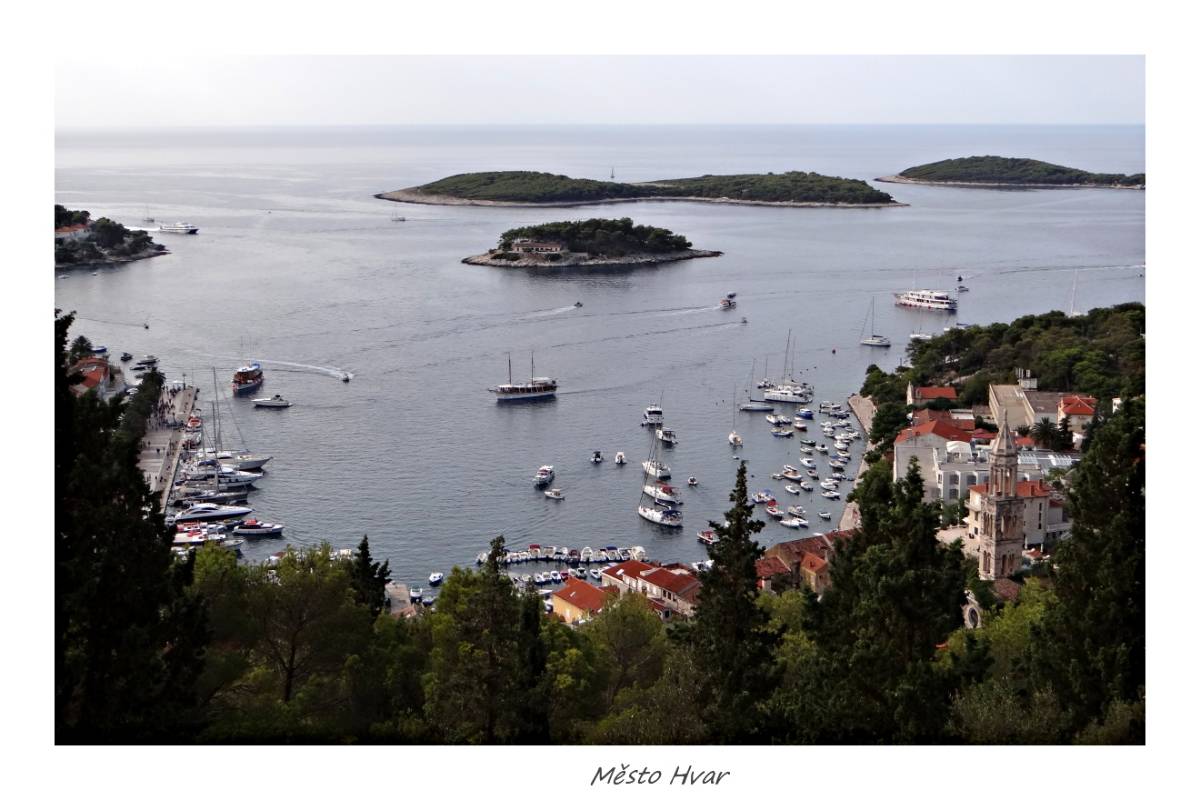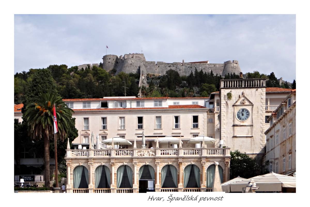 Hvar: hlavní město ostrova a my jsme zde na výletě. Nad městem se vypíná Španělská pevnost a na stráních pod pevností obdivujeme vzrostlé agáve a opuncie. V přístavu pak velkolepé lodě. Pokračujeme na pláž poblíž Vrbosky. Je krásný teplý den. Z „městečka“ Vrboska však kvůli koupání nic neuvidíme.