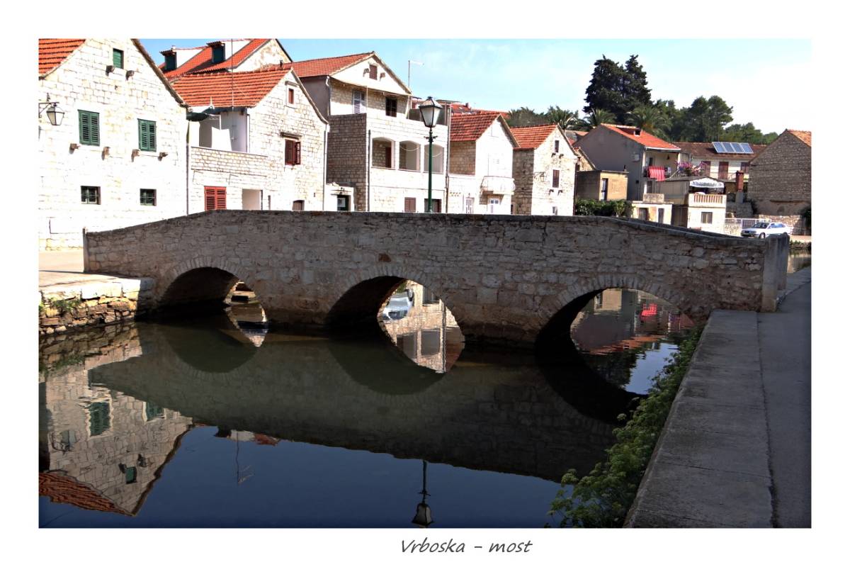 Vrboska: ospalé městečko natěsnané kolem zátoky, na stráních nad zátokou rozeseté domy, zřejmě s ubytováním pro turisty. K moři docela daleko. Procházíme se a najdeme i tři kamenné mosty, které spojuje historie a skoro prázdný kanál. K poslednímu mostu už voda nesahá. Mosty jsou fotogenické a tak fotím a fotím.