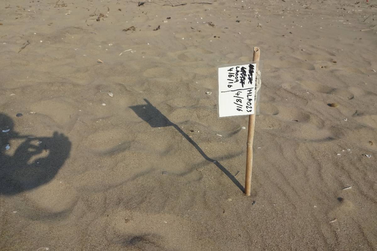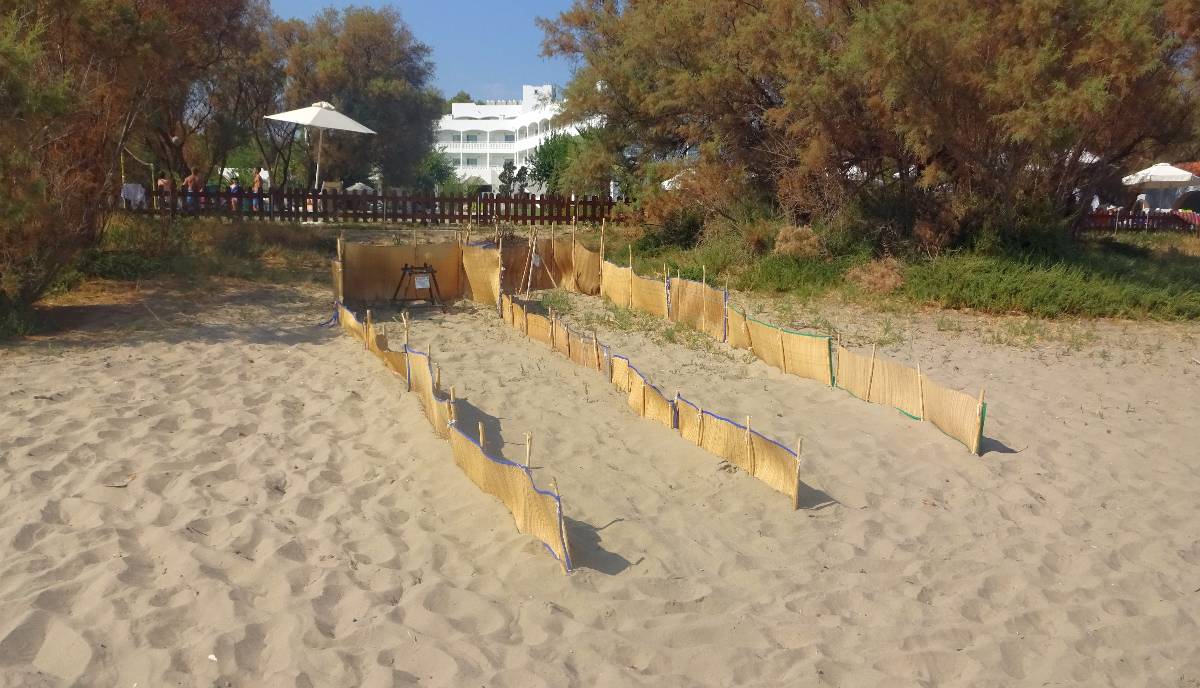 Paní želvy plní své mateřské povinnosti výhradně v noci. Pláž se na dobu od 20 do 7 hod úplně uzavírá a nebudete tam vpuštěni, což jsem si osobně ověřila. Nad pláží vede letový koridor navazující na letiště, vzdálené jen 800 m od moře. V zájmu klidu želví populace tu v noci nelétají ani letadla. Ochránci přírody bdí a každé hnízdo s vejci označí údaji o snůšce, takže pláž je poseta ohrádkami a dřevěnými stojánky. Želvím vajíčkům je v horkém písku určitě dobře a v klidu si tu prožívají svoji metamorfózu na želvičky.