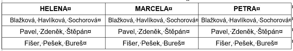 3. Slečna Havlíková čekala na radnici Zdeňka nebo Pavla;