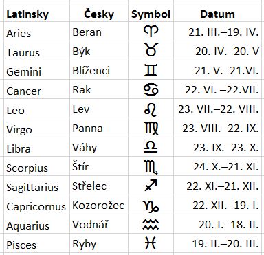 Poznámka 2: Zvířetníková zamení najdete dole v Galerii