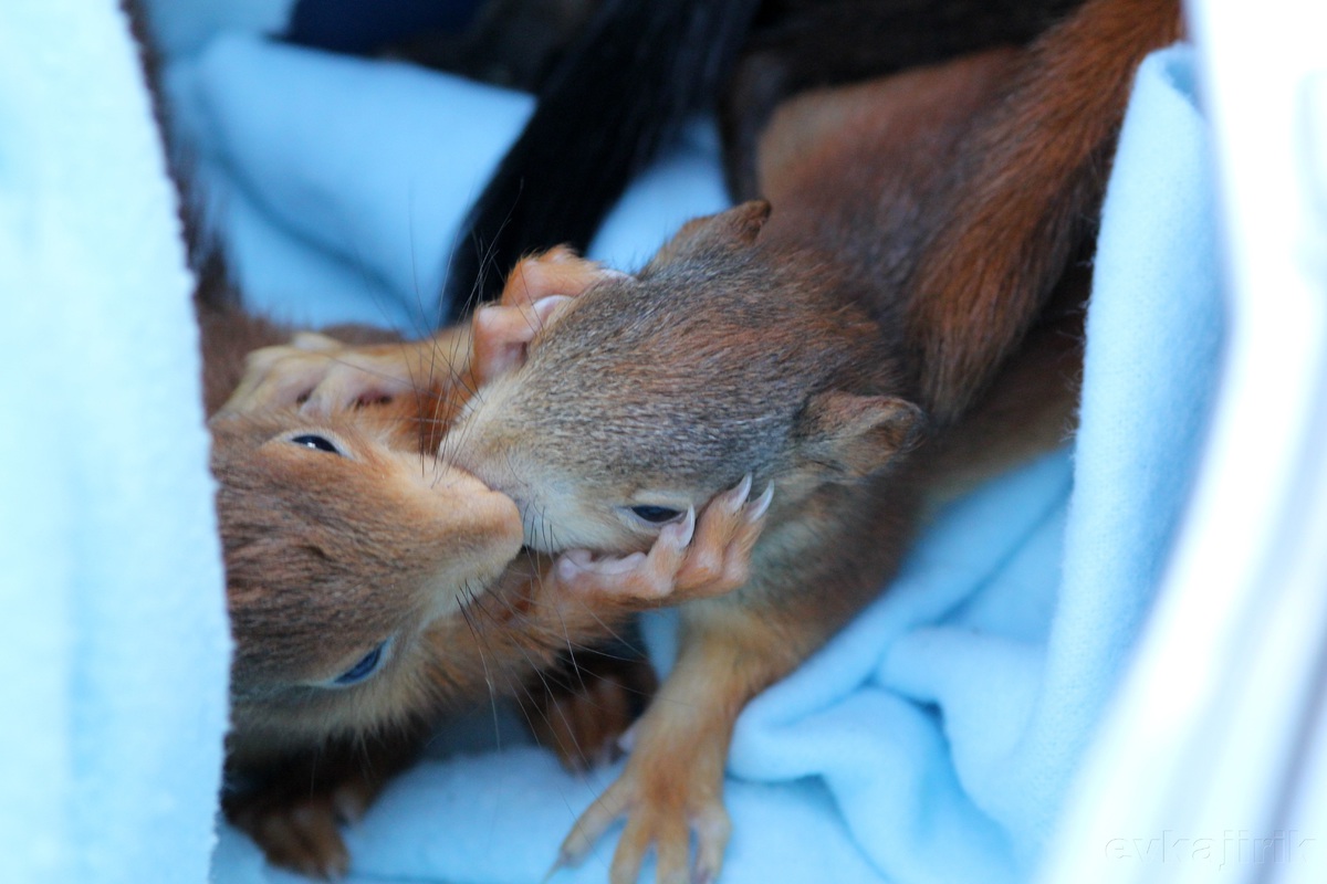 Fotografování mě naučilo velké trpělivosti. Co se týká veverek, mají po léta hnízdo na modřínu přímo nad chatou a přes pozemek u chaty vede jejich cesta do druhého hnízda a na lísky a pamlsky v další části lesa. Mimo jiné pravidelně dvakrát za sezonu vyvádějí mladé, pro které jsou okolní stromy jedinečným místem pro jejich učení a hrátky. Za tu dlouhou dobu, co mám možnost je pozorovat, jsem zjistila, jaké mají zvyky, v kolik vyrážejí za potravou a tak. No a potom stačí jen ve správnou chvíli čekat na správném místě. K hlubšímu poznání života veverek mě také přivedlo setkání se vzácnými lidmi, kteří vedou záchrannou stanici PINKY pro veverky a vlastními silami zachrání každý rok kolem sta veverek. Náhodou jsem našla při procházce lesem malé veverče a předala ho tam. Také jsem měla možnost se do záchranné stanice podívat a blíže se s jejich prací seznámit. Tito lidé si zaslouží si obrovský obdiv a úctu. Více na: http://www.veveratka.cz