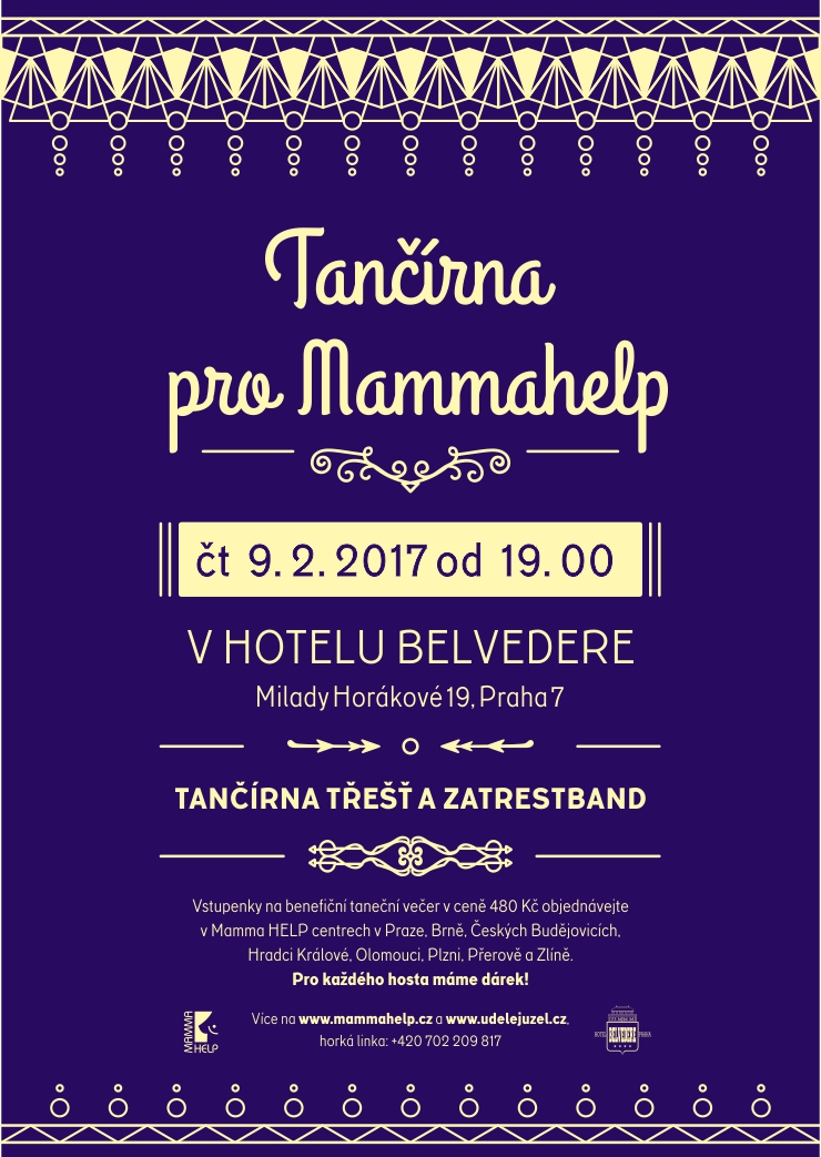 Ve čtvrtek 9. února v sále Hotelu Belvedere v Praze koná benefiční večer pro Mamma HELP. Jde sice o tančírnu, ale tančit se tu nemusí, nemusíte ze skříně vytahovat ani velké večerní róby... jde hlavně o to bavit se a navíc podpořit dobrou věc!