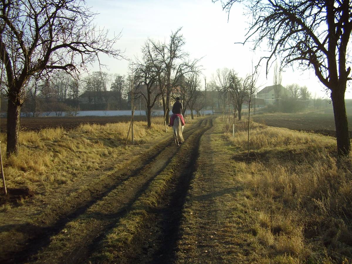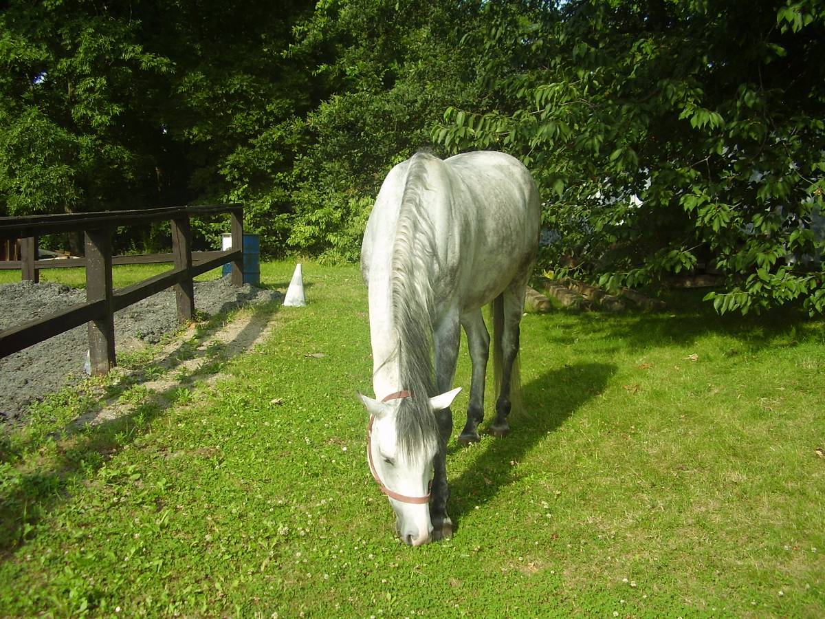 V té koňské euforii jsem si domluvila, že bych to taky zkusila. Vybrali mi zkušenou, starší, hodnou, klidnou kobylku. Ovšem jen do chvíle, než kolem proběhl pes. Kobylka dostala amok a já padla na krovky. Doslova. Nestihla jsem se chytit ani hřívy ani nákrčáku a žuch. Neměla jsem vestu a naštěstí jsem si vyrazila jen dech. Zažít to znovu bych nechtěla. Jsem srab, a tak jsem ježdění pověsila na hřebík ještě dřív, než jsem začala. Zůstala jsem jen u té kryté jízdárny a procházek. Byl to ale zážitek, na který se nezapomíná. Manžel onemocněl a návštěvy na jízdárně řídly. Lupínka si vzala do opatrování jízdárna, za což jsme byli moc rádi. Byl tam zvyklý a můžu se za ním kdykoliv podívat.