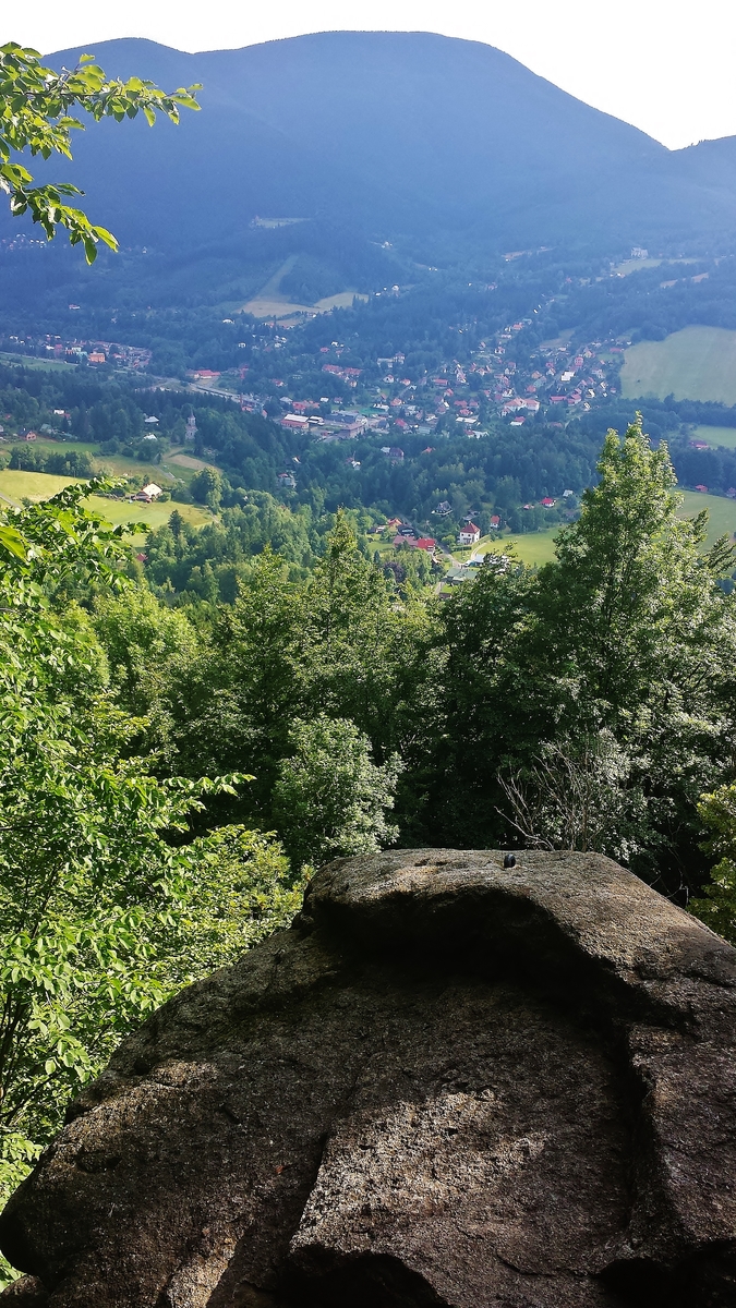 Ondráš, jako správný šéf, stál na skále a chlapi se sekerkami a bambitkami k němu vzhlíželi zezdola. Té skále se říká Ondrášova a uvidíte ji, když se vydáte z Malenovic, vesničky pod Lysou horou.