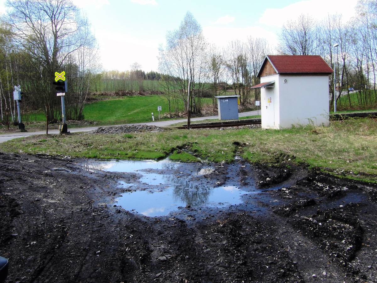 Jednu kolej kříží cesta, po ní kousek je do města.