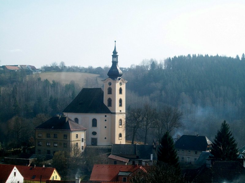 Kouzelný je pohled shora od kaple dolů na kostel...
