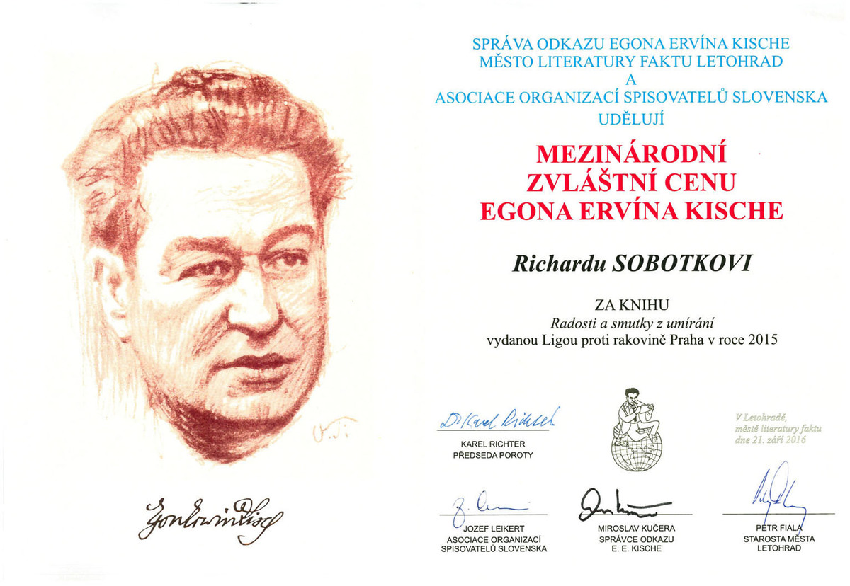 Jen jednou se rozhodl napsat knížku sám o sobě. Jmenuje se Radost a smutky z umírání. Před třemi lety mu totiž lékaři oznámili, že má rakovinu. „Já nad tím tématem přemýšlel už dříve. Sledoval jsem lidi, kteří s tou nemocí bojovali. Babička manželky na rakovinu zemřela a bylo to strašné umírání. Tehdy medicína nebyla na takové úrovni jako nyní, nic na její bolesti nezabíralo. Zajímalo mě to, ale říkal jsem si, že přece nemůžu chodit za nemocnými lidmi a ptát se jich, jak se jim umírá. A pak jsem do toho spadnul sám,“ říká.