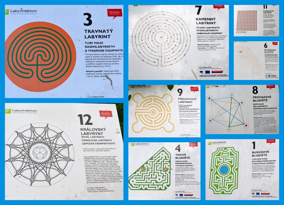 V bludištích (klasických) jsem opravdu bloudila, pobíhala jsem v nich jako laboratorní myš hledající pamlsek. Opakovaně jsem vcházela do slepých uliček, soumarsky se vracela na dílčí rozcestí, často si volila nesprávný směr složitě větvené cesty, bylo mi hádankou nalézt střed, případně východ. To labyrinty byly jiné kafé, ty jsem procházela bezmyšlenkovitě – ono ani jiné cesty nebylo. Labyrinty mají jednoznačnou trasu. V popisných tabulích bylo psáno, že se využívají ke skupinovým rituálům či meditacím, neboť mají schopnost dobít naši ubývající energii. Jakmile jsem si to přečetla, už mne z labyrintů nedostali, chodila jsem po jejich vyznačené cestě s přivřenýma očima a pobrukovala si divný hrdelní zvuk, dobíjela se vesmírnou energií, než mne vystrnadily rodinky s hulákajícími ratolestmi.