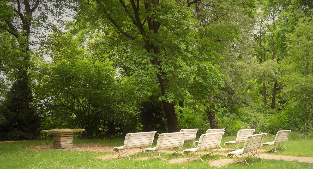 Magický Královský labyrint, vybudovaný v roce 2016 k sedmistým narozeninám českého krále Karla IV. jsem si z travnatého valu nad ním dlouze prohlížela. Uvádí se, že byl sestaven podle středověkých předloh a disponuje nejen mystikou středověkých čísel, ale že jeho vlastní energetický náboj umocňují tzv. „zářiče“ z drahých kamenů. Potvrdit to nedokáži, avšak jak jsem jej zkoumala z trávy, bylo mi příjemně a přemýšlela jsem, zda-li by působením tohoto labyrintu něco tklivého zkomponoval Bedřich Smetana, který park a zámek ve své době navštěvoval.