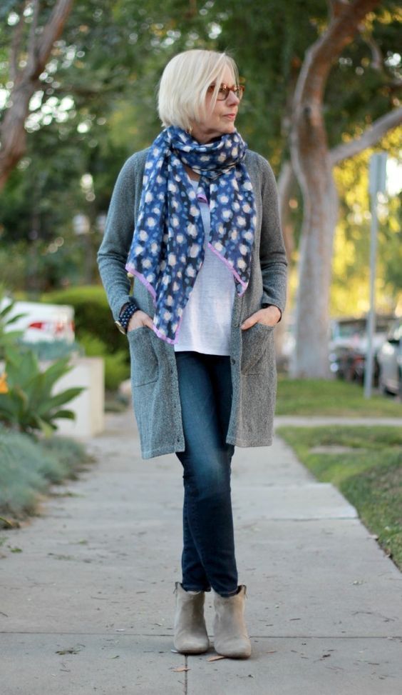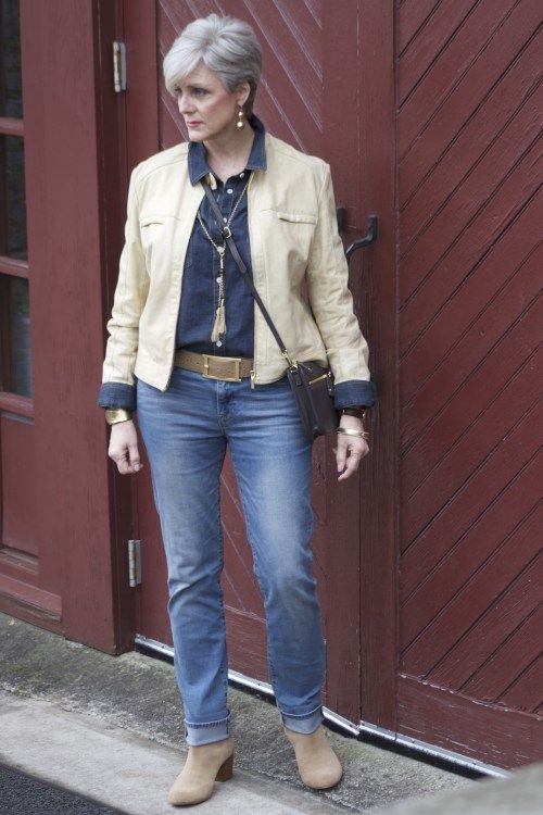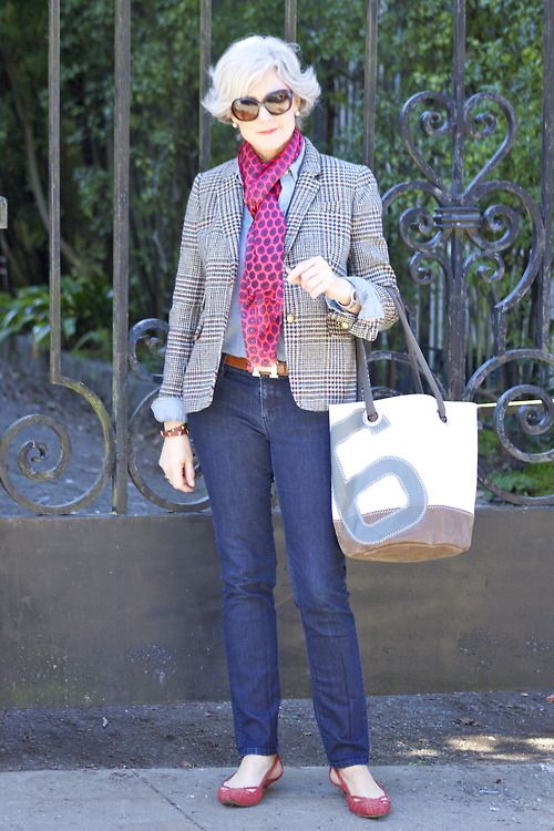 I ženy, které jsou ve věku kolem sedmdesátky považované za ztělesnění elegantních dam, mají džíny ve svém šatníku. „Džíny a bílou košili nebo jednoduchý svetr mám moc ráda,“ říká například zpěvačka Marie Rottrová. „Džíny jsou základ,“ potvrzuje její kolegyně Petra Janů. V džínách jsou často vidět herečky Meryl Streepová či Jane Fondová a další úspěšné ženy ve věku kolem šedesátky či výše.