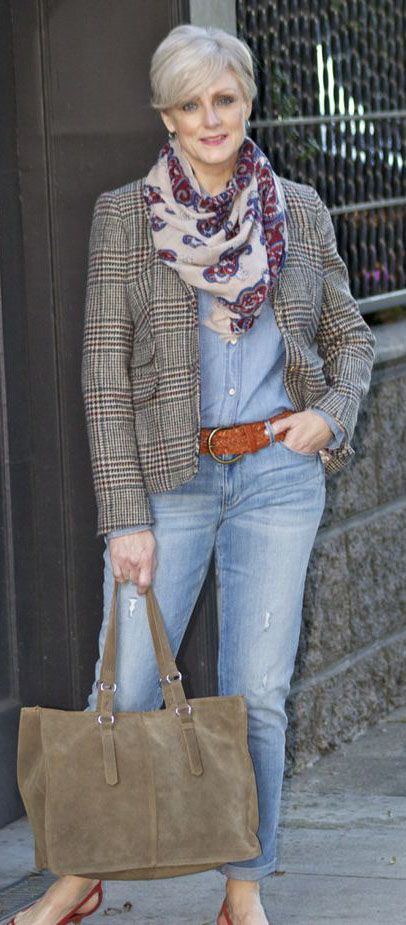 Ale pak vyjdeme na ulici a vidíme žalostné případy. Ženy kyprých tvarů v džínách zdobených různými kamínky či motivy, navíc těsně obepnutými, takže výsledek je opravdu poněkud k smíchu či k politování. Bylo by však velkou chybou vzít si z toho ponaučení, že od určitého věku či určitého rozměru pozadí se pro ženu džíny nehodí. Větší zadek, silnější stehna nebo vrásky v obličeji rozhodně nejsou důvodem myslet si, že tohle oblečení není vhodné. Hodí se pro každou, jen si prohlédněme třeba fotografie uznávané architektky Evy Jiřičné. Ta má šedesátku za sebou, ale klidně nosí džíny, koženou bundu a velký šál. Výsledek je skvělý, rozhodně ne směšný.