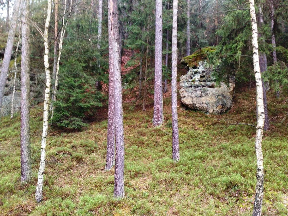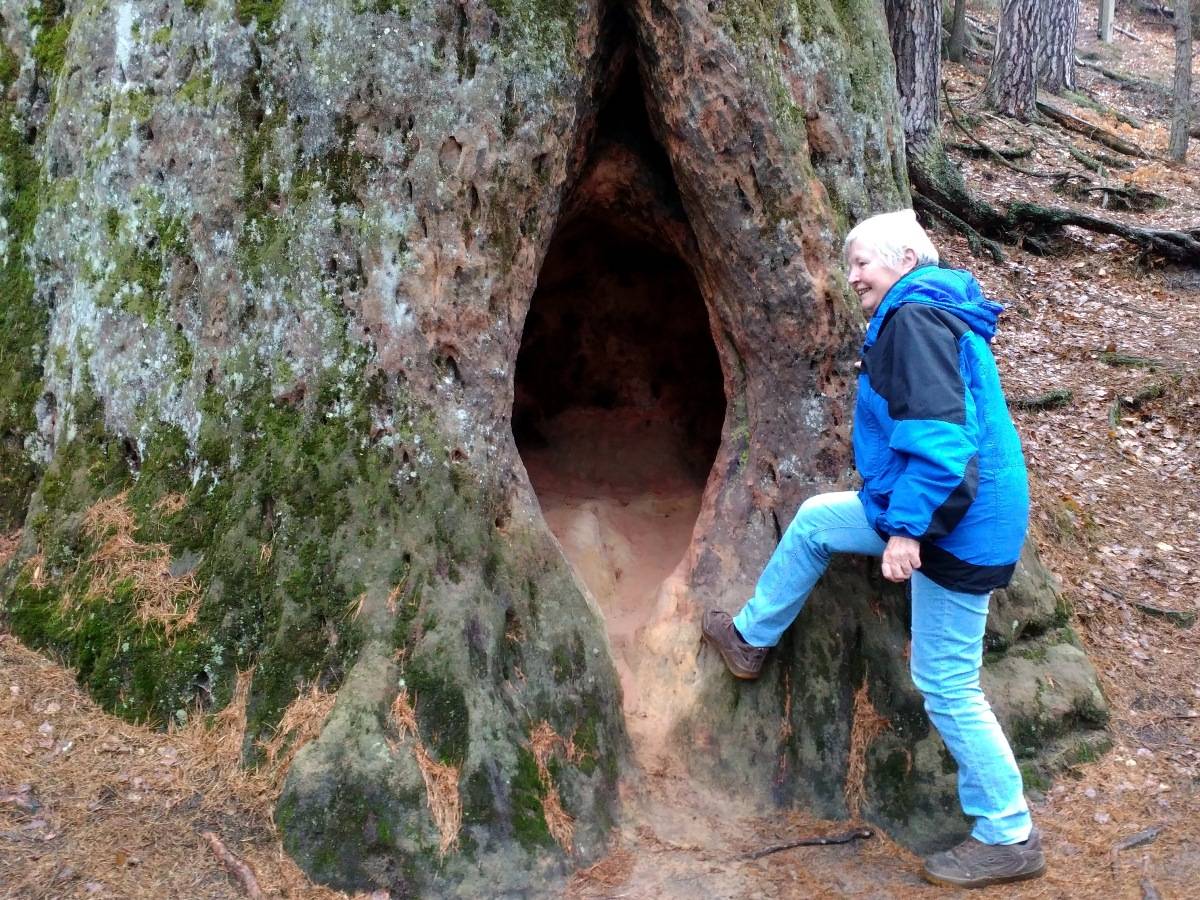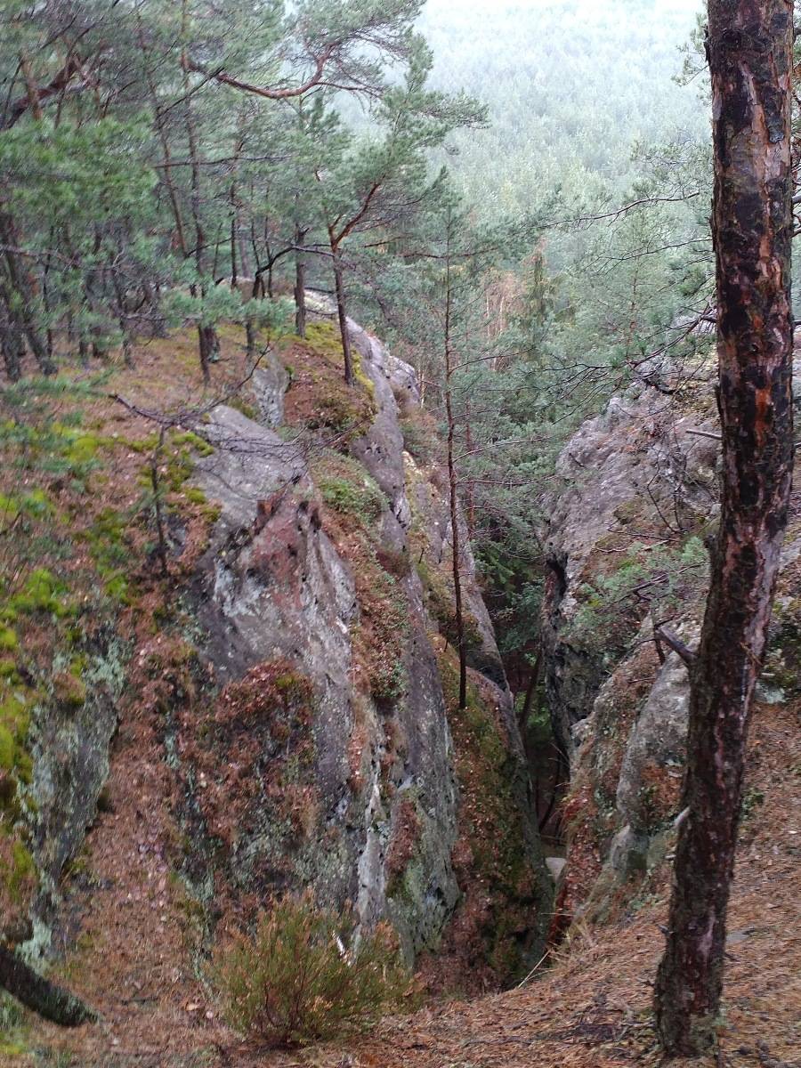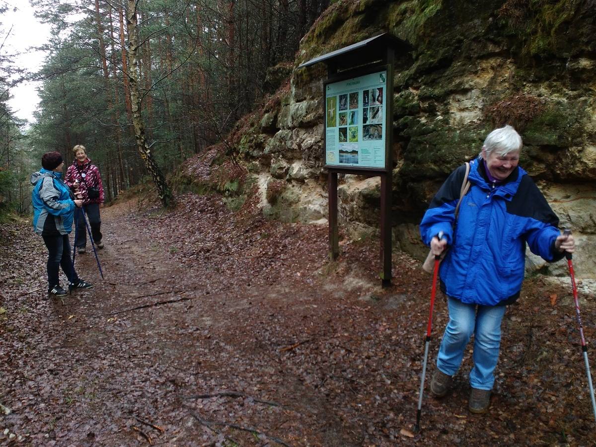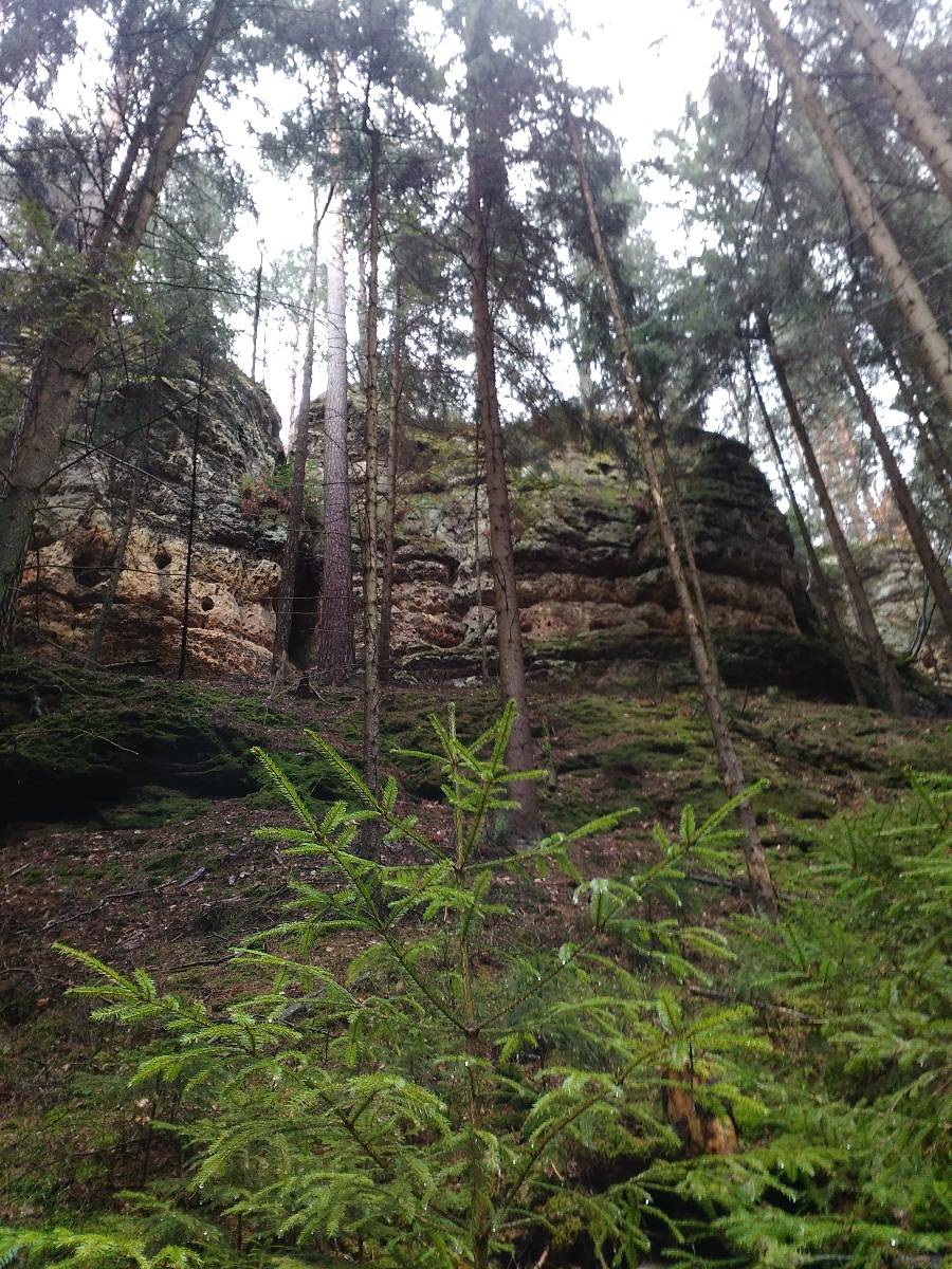 Nad námi se vypínaly pískovcové skály bizarních tvarů, jarní les nešetřil svěží vůní. Značené stezky vedly příjemným, nenáročným terénem. Informační panely na trase nám byly důležitým návodem, čeho všeho si cestou všímat. Z Hradčanské vyhlídky jsme hleděly do mnoha hlubokých roklí a pozorovaly vzdálenou, prázdnou plochu vojenského letiště Hradčany - Ralsko. Právě tam se natáčely některé záběry k filmu Tmavomodrý svět (který jistě znáte, byl divácky nejúspěšnějším filmem roku 2001).