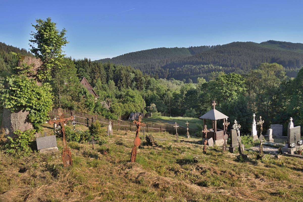 V blízkosti kostela se nachází hřbitov s mnoha cennými litinovými kříži z místních železáren.