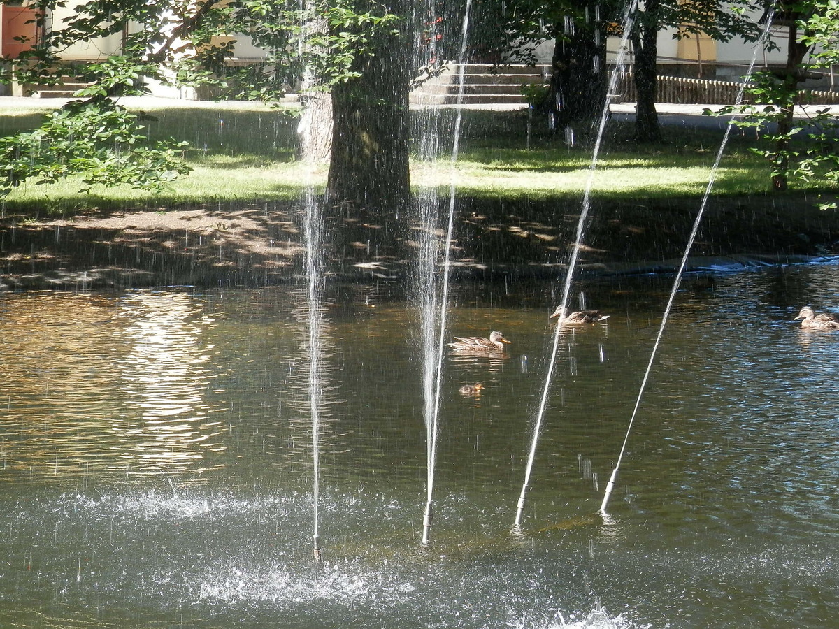 Oproti včerejšku je město klidné, asi se teprve probouzí do takřka letní neděle. Jdu podél řeky, sleduji její tok a neuvěřitelně čistou vodu. Čtu si informaci o projektu Za čistou Bečvu. Pak přejdu po můstku do parku a jsem u jezírka před Společenským domem. Tady už to od včerejška znám.