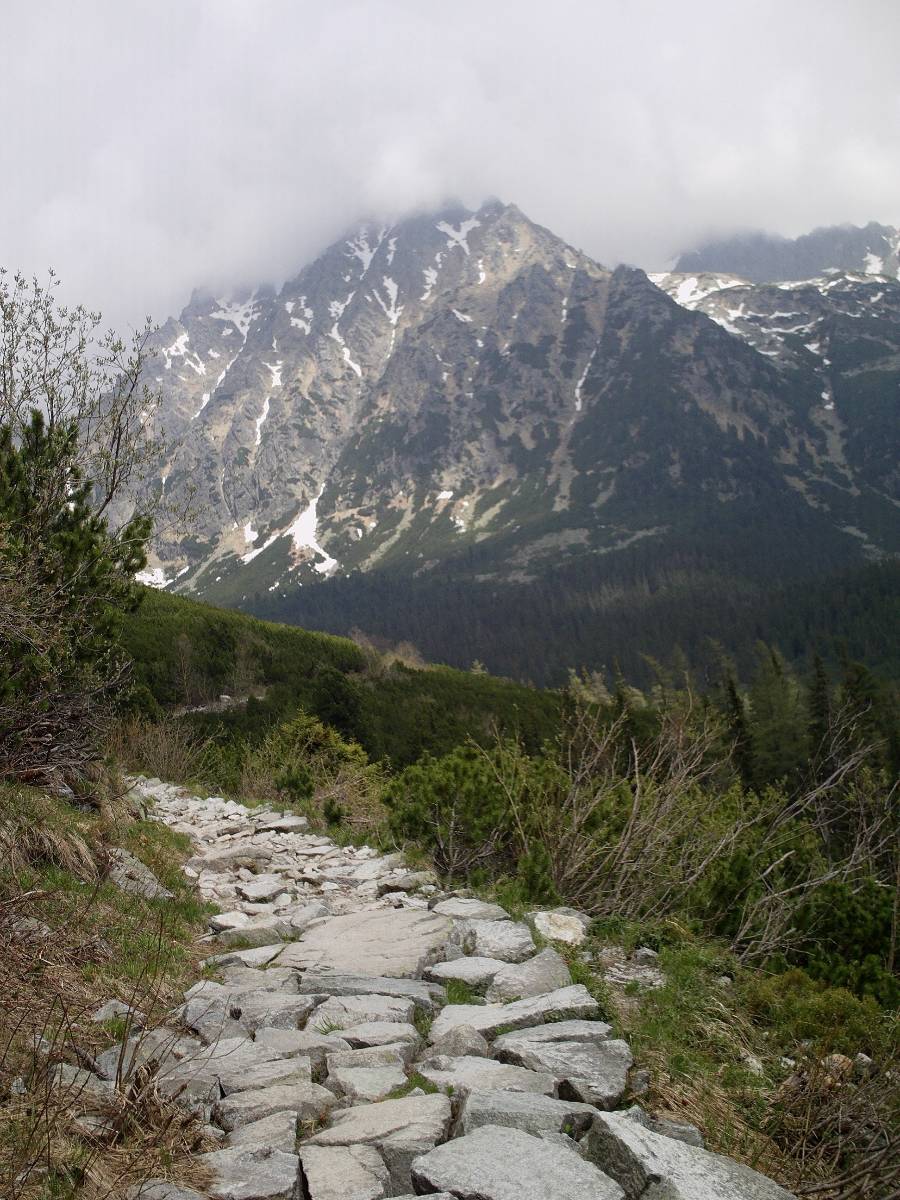 Má smůlu, holka, rychleji mi to nejde. Už i tak sotva stíhám koukat po okolí, turistická vycházka se mění v nebezpečný sprint po kamenech. Přesto vnímám zasněžené vrcholy hor, sráz po pravé straně cestičky i stále značně viditelné následky polomu z roku 2004, obratně se vyhýbám neschůdným místům nebo protijdoucím turistům.