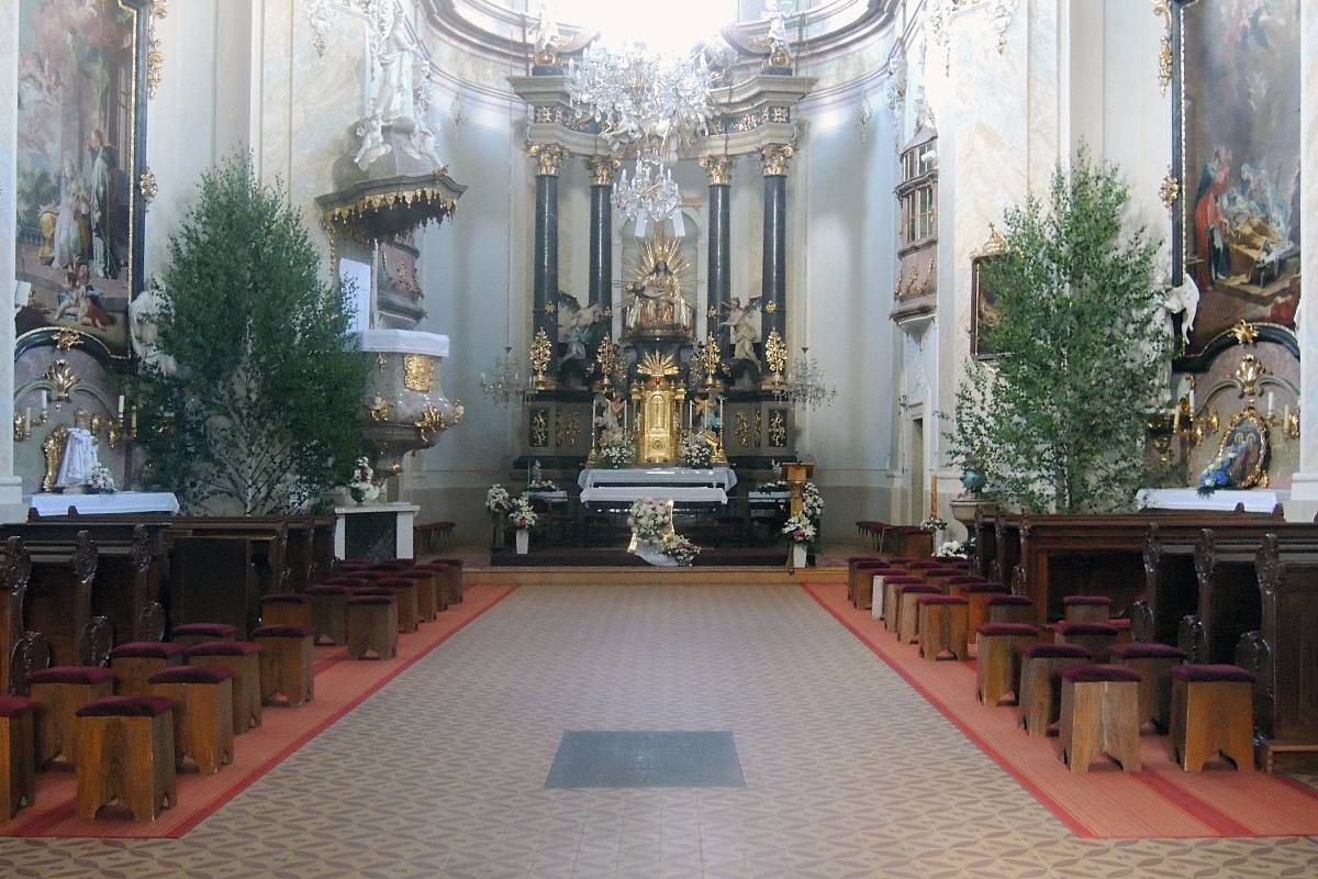 Barokní kostel patří k významným architektonickým památkám. V kryptě kostela je pochována jeho zakladatelka Karolina z Roggendorfu. Půdorys kostela je ve tvaru želvy, což je mariánský symbol ochrany.