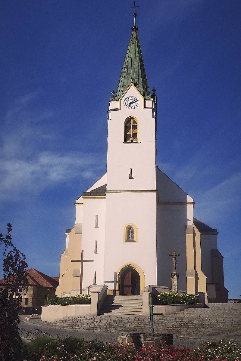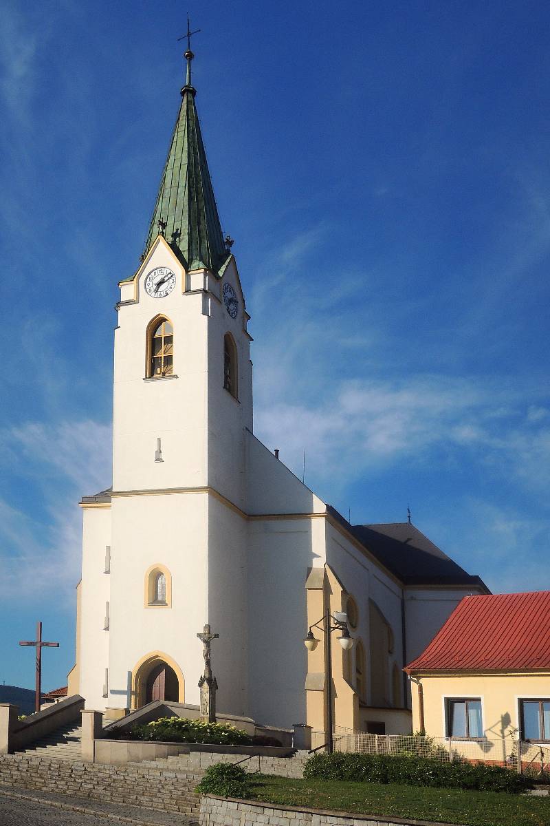 Kostel postavený v pseudogotickém stylu se nachází v obci, která leží ve Zlínském kraji na hranicích se Slovenskem. V roce 2000 byl kostel prohlášen za kulturní památku. Hned za kostelem je hřbitov, kde mezi hroby v řadě neexistují žádné uličky.
