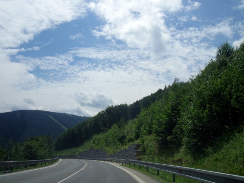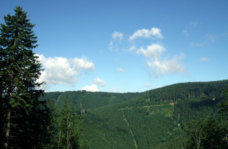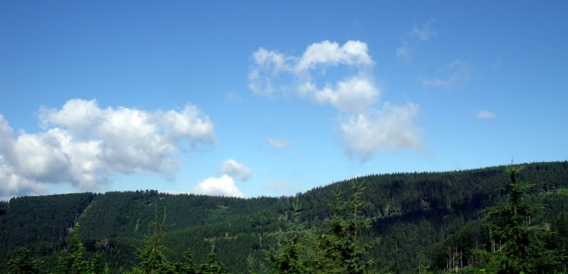 My jsme ale jen (celkem 4x) projížděli silnicí z Koutů nad Desnou do Jeseníku. Když je krásné počasí, vidíte hory, vrcholky hor a vše nádherné (tedy viděla jsem to já, jako neřidič, Jiřík z té krásy asi moc neviděl. A protože mě fotky uchvátily, tak se s Vámi ráda o pár z nich podělím.